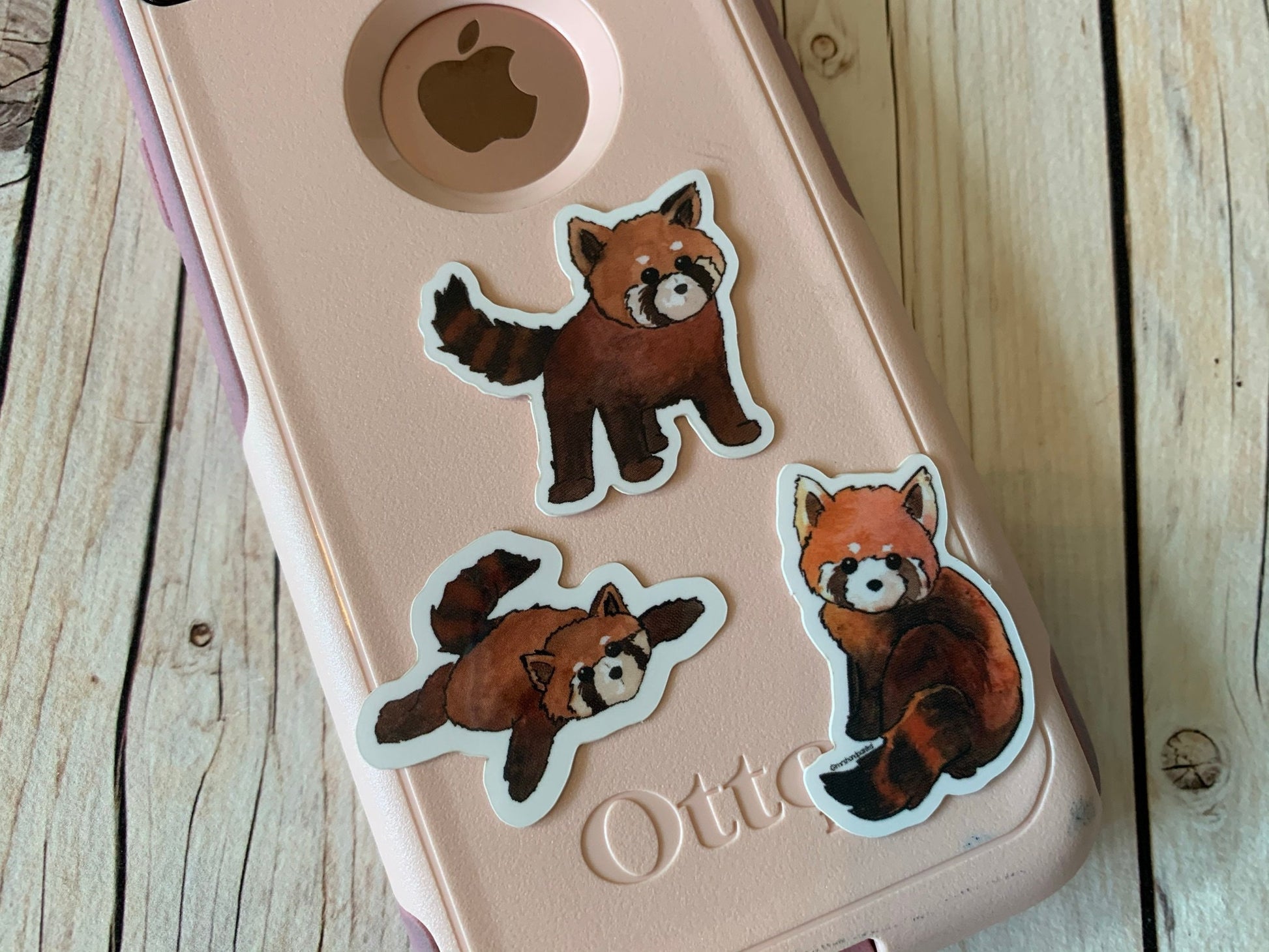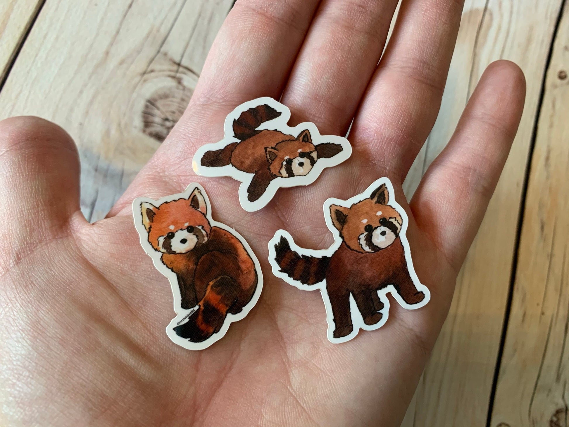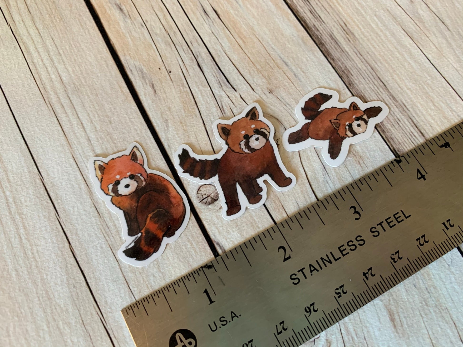 3 pc Mini Red Panda Watercolor Vinyl Stickers