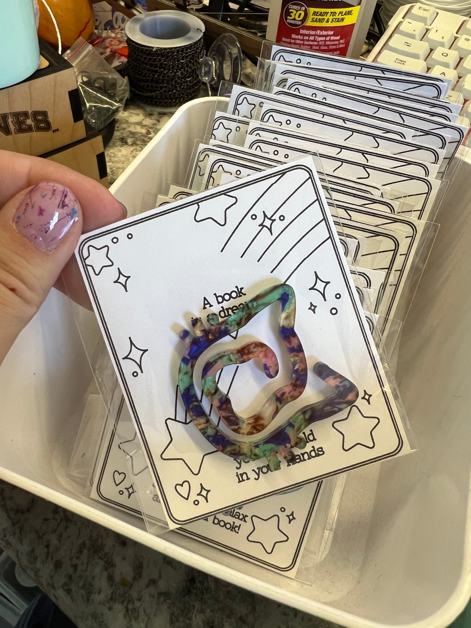 Say goodbye to lost pages with this must-have bookmark clip! Gift it to a bookworm, or keep it to yourself; this cute acrylic clip doubles as a snack holder, so you won't have to break the bank looking for a multi-use stocking stuffer! #GiftGoals!