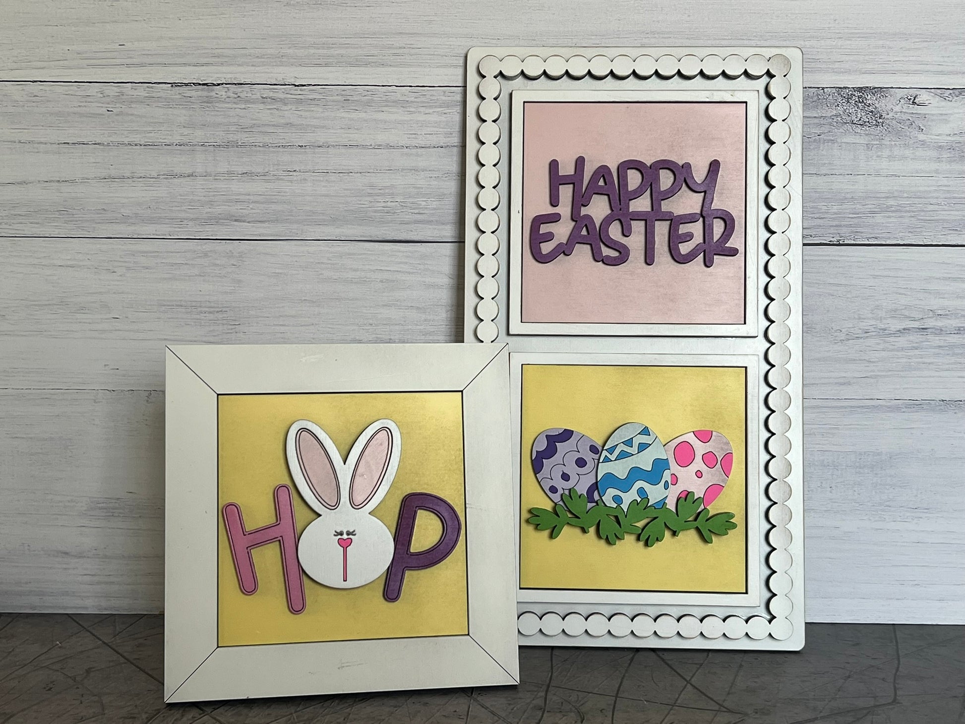 Decorate your home with Bunny Hop themed decor! Choose from 3 different designs: Bunny "Hop", Happy Easter and Easter Eggs