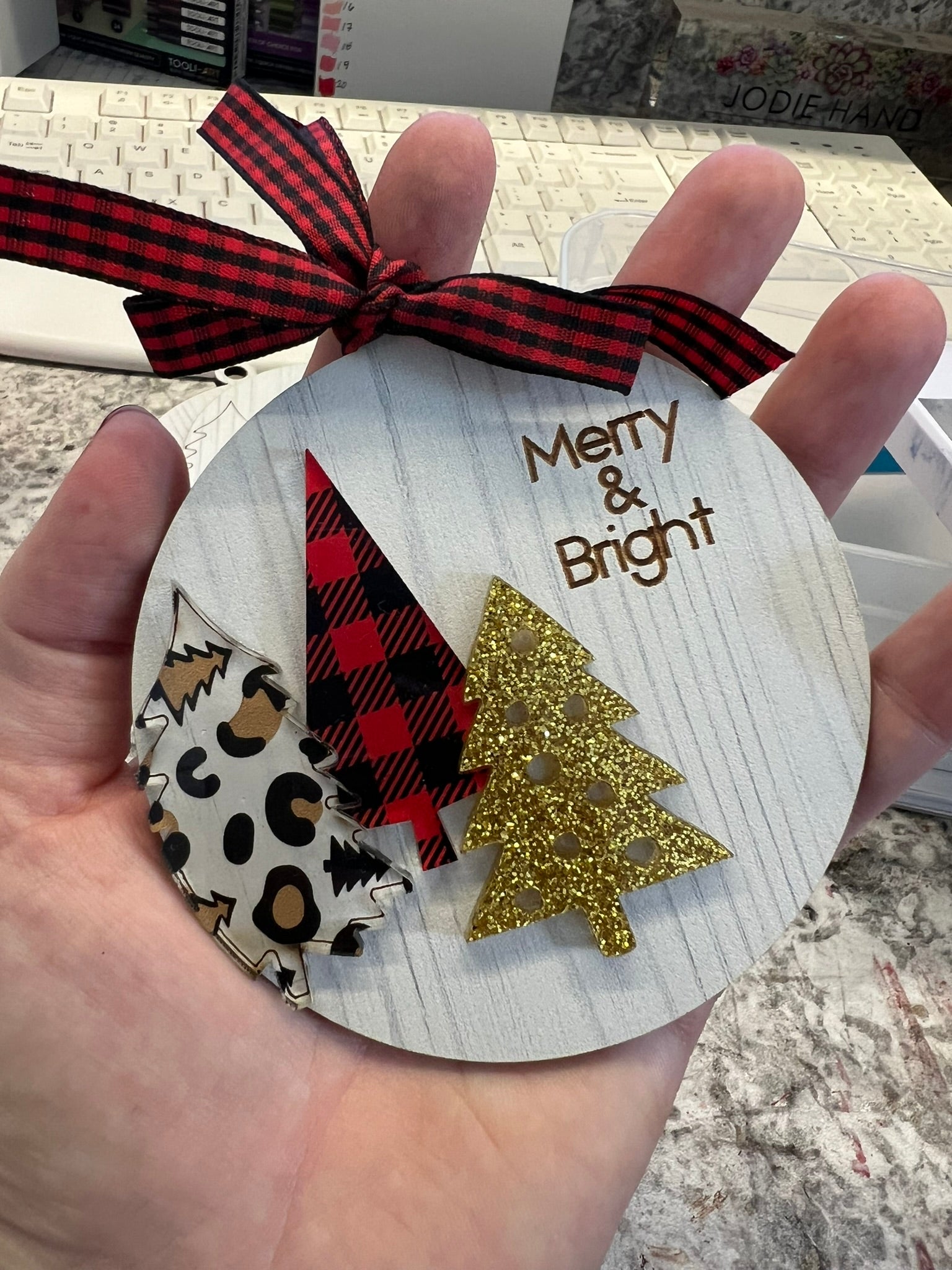 Make your Christmas sparkle with this laser-cut acrylic and wood Christmas ornament. A festive feast for the eyes!