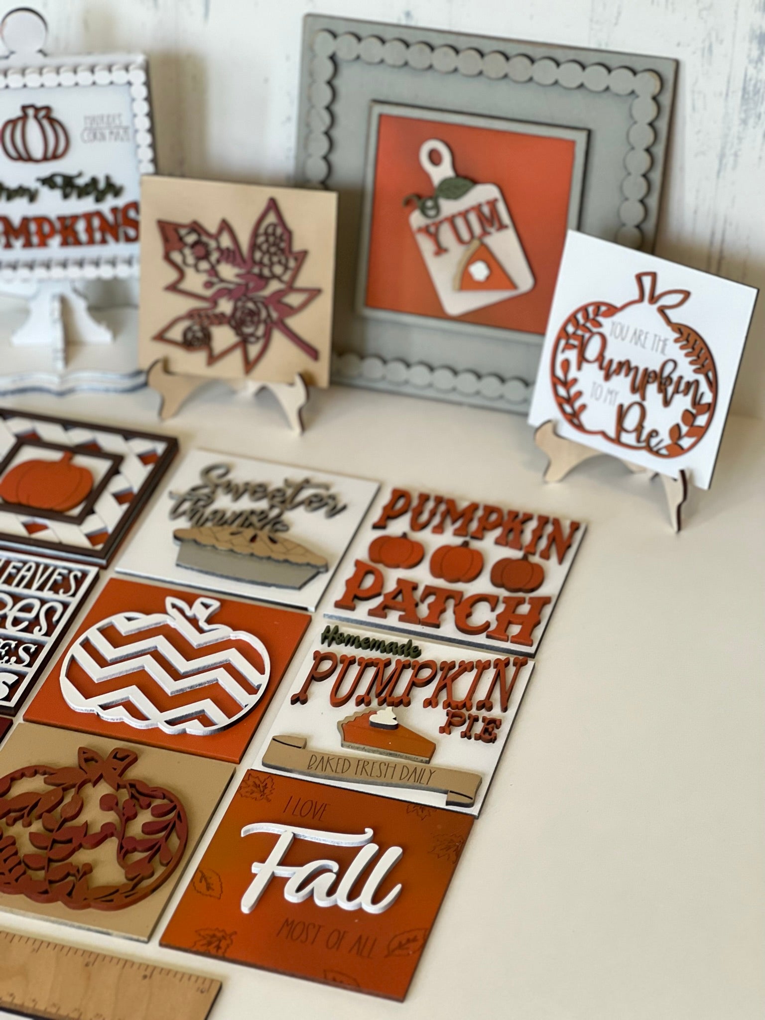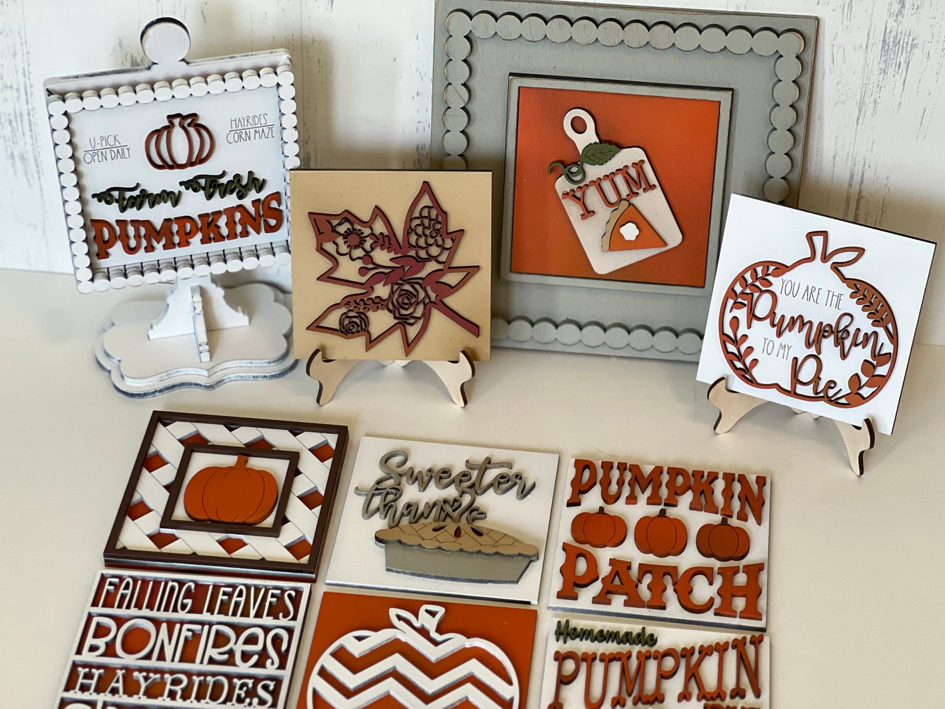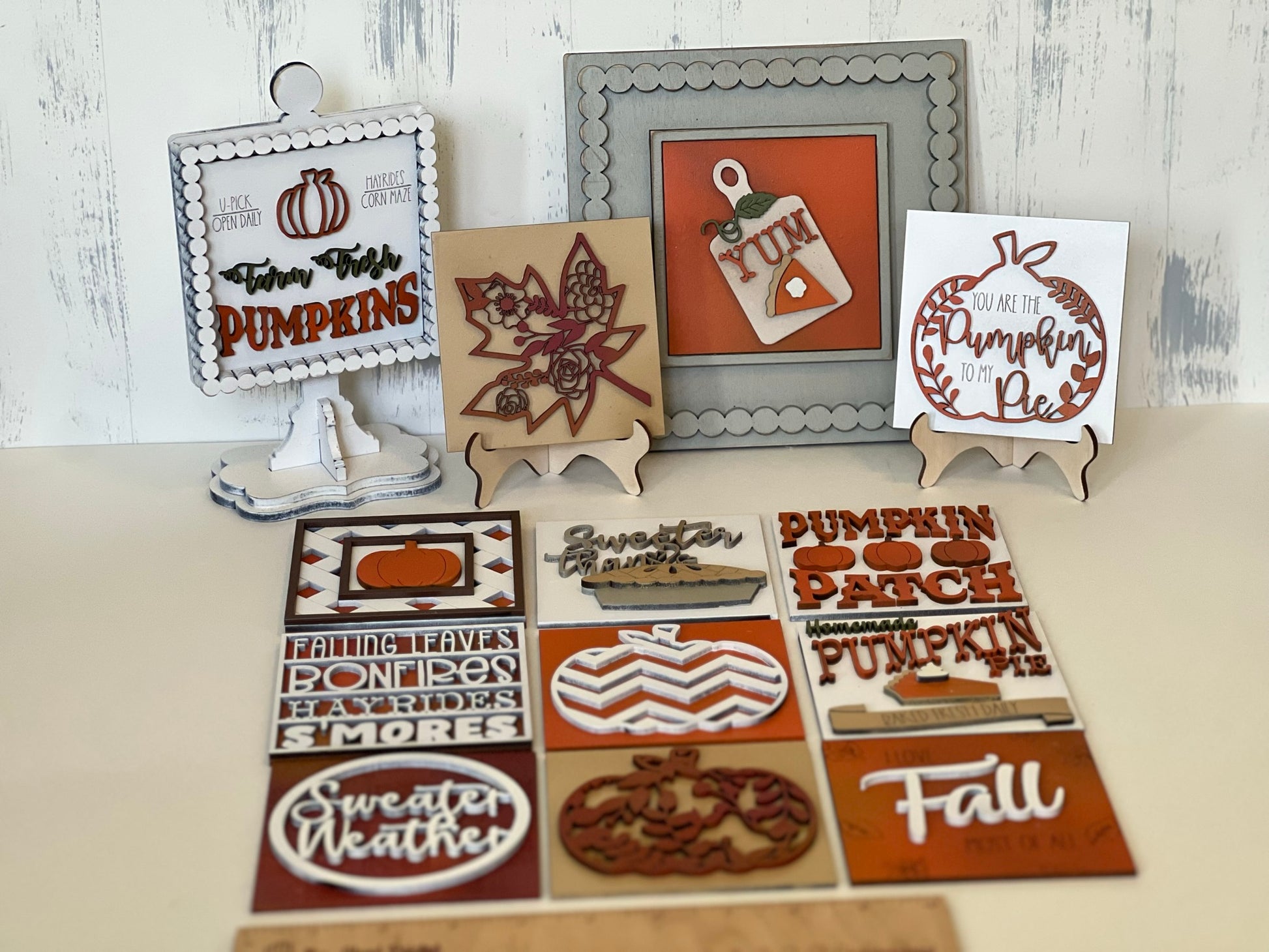 Designs from Lucky Heart Designs files - I've made some adjustments to the original files to create a collection of fall / pumpkin pie themed interchangeable leaning ladder tiles. Each sold individually. Choose from a variety of styles.