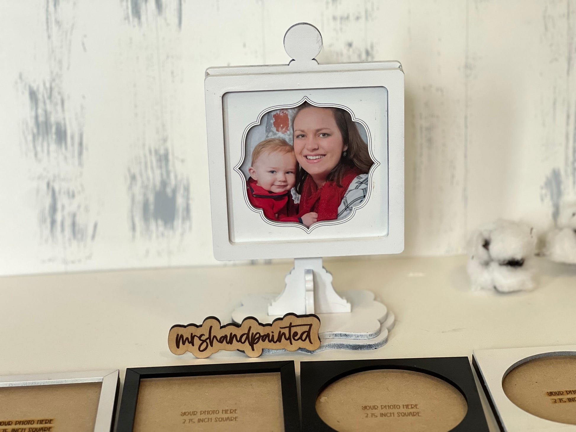 Choose from plain frame or faux beaded trim styles for this laser cut sign holder to compliment your interchangeable sign tiles for every season! Each sign tile holder can hold 1individual sign tiles - the opening fits perfectly for the 4.25 inch sign tiles in my shop. There is a slot at the top of each sign holder to drop your tile in. Simply tip it over to drop the tile out easily.