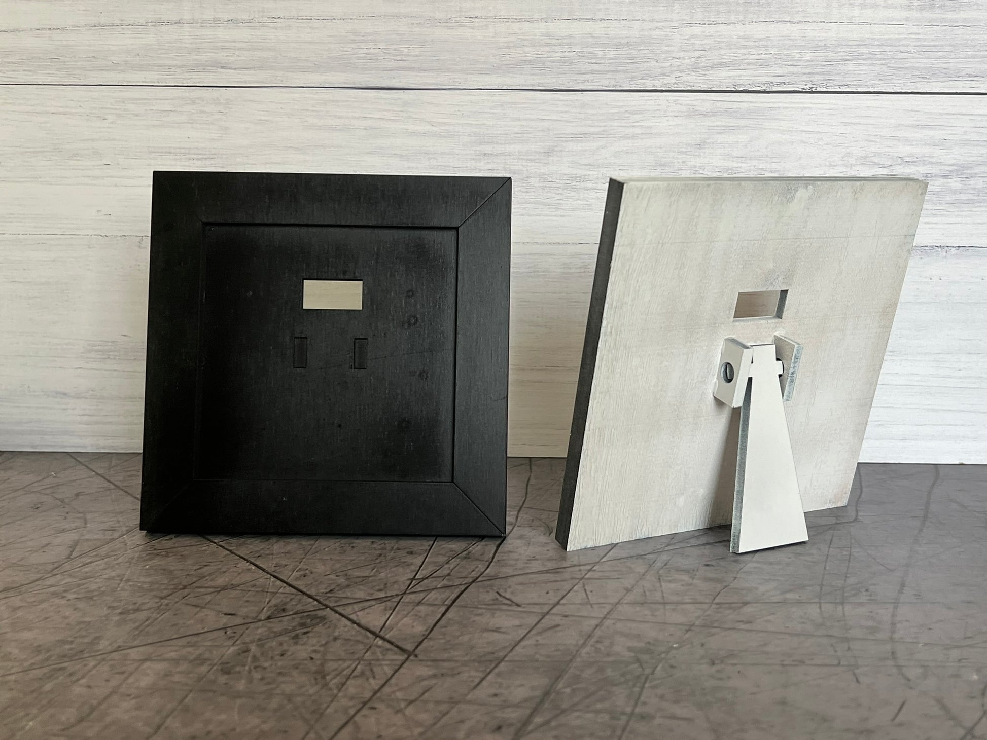 Easel back square frame for interchangeable sign tiles for every season! Each sign tile frame can hold 1 individual sign tiles - the opening fits perfectly for the 4.25 inch sign tiles in my shop. Tip out easel on back is attached to the frame to allow it to free stand.