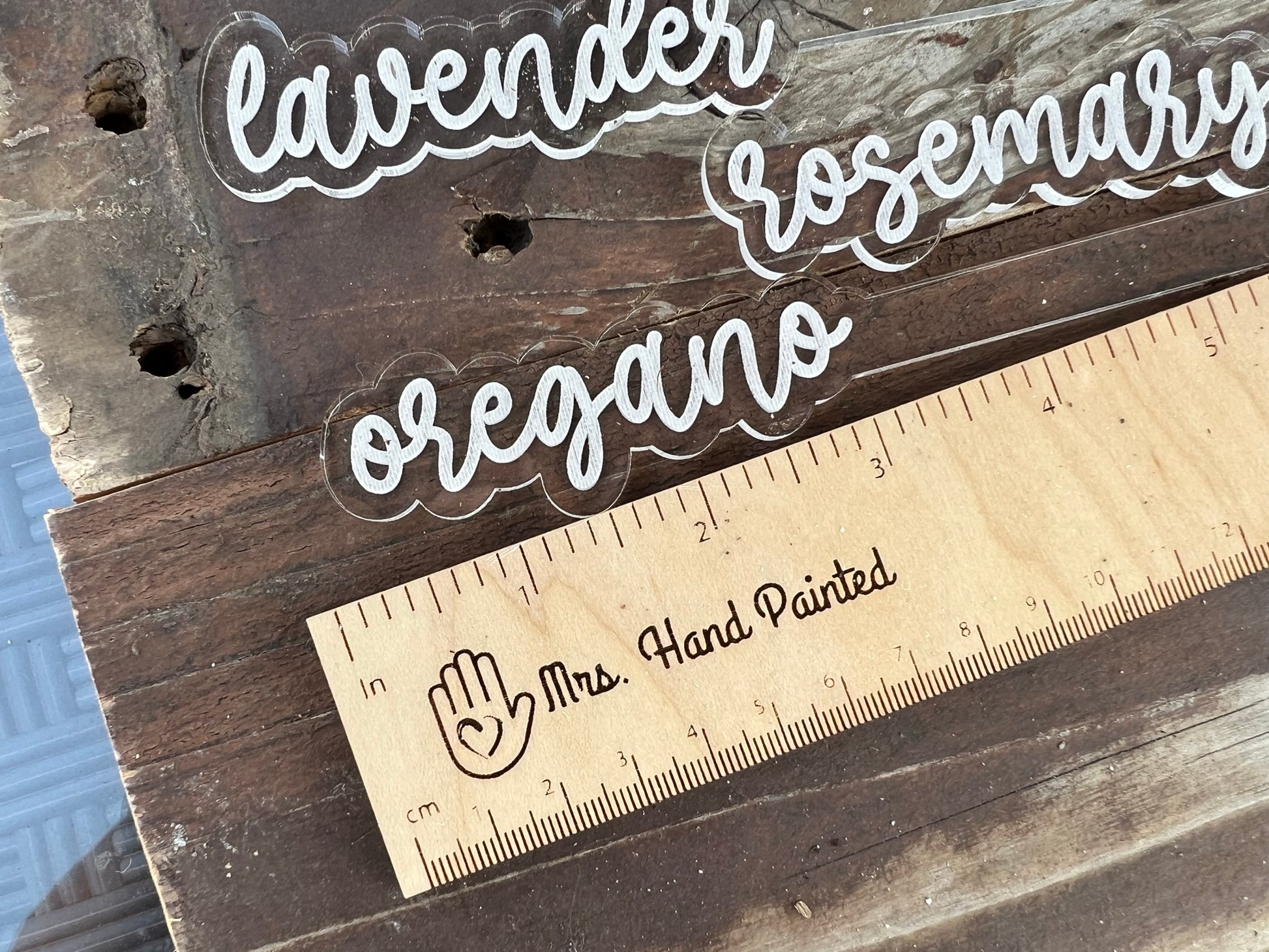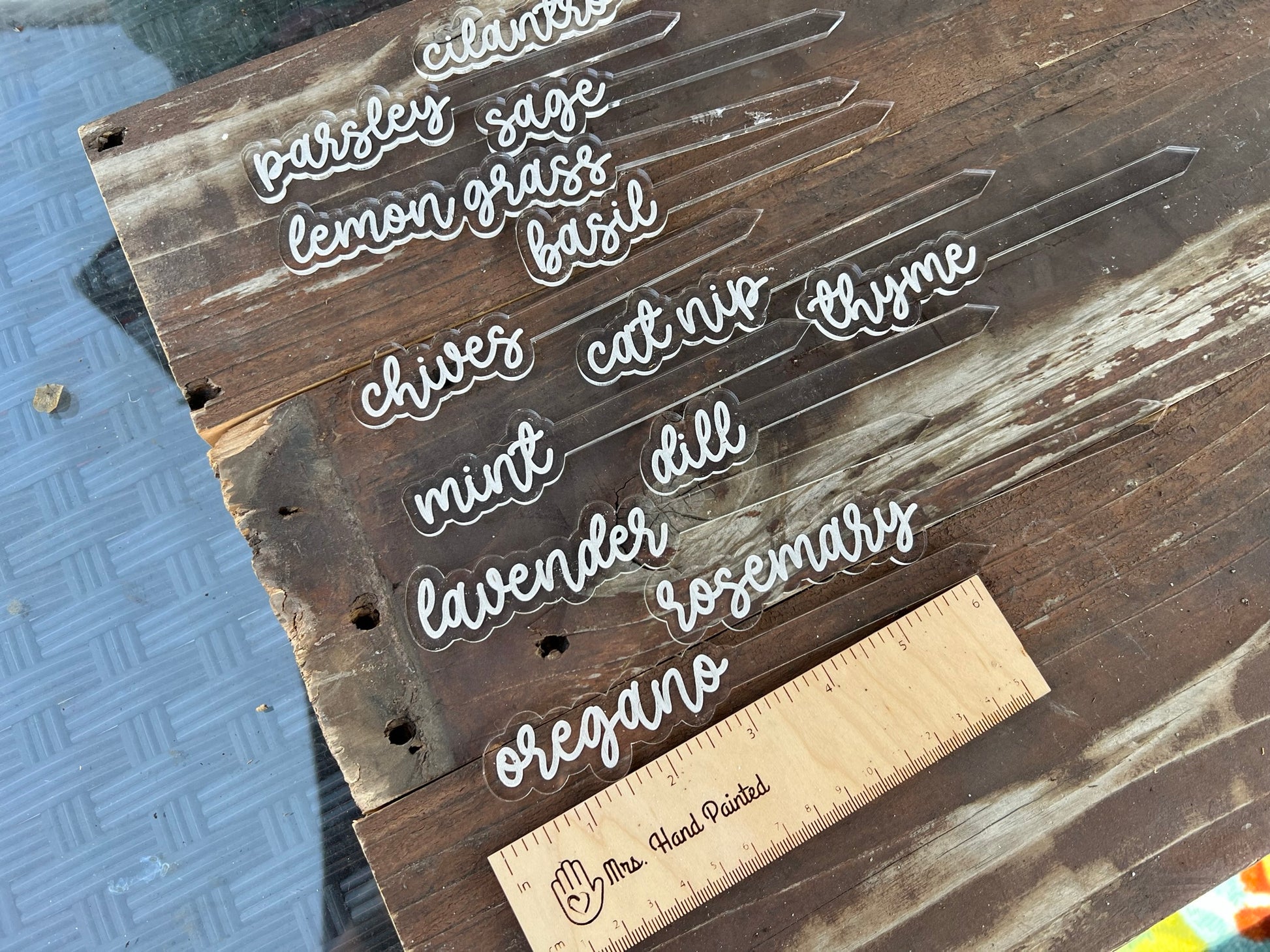 Each marker is made from 1/8" clear acrylic and laser engraved on the reverse side.