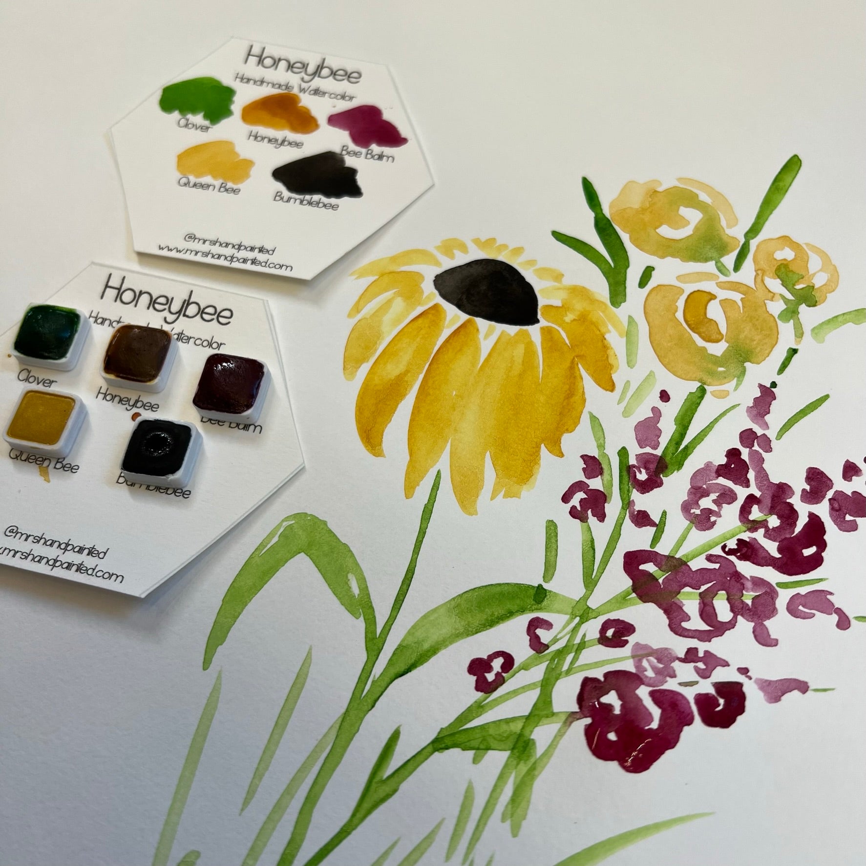 Handmade Watercolor Paints - HONEYBEE - Artisan Paint Palette, Set of 5 Watercolors, 4 Matte, 1 Shimmer Color