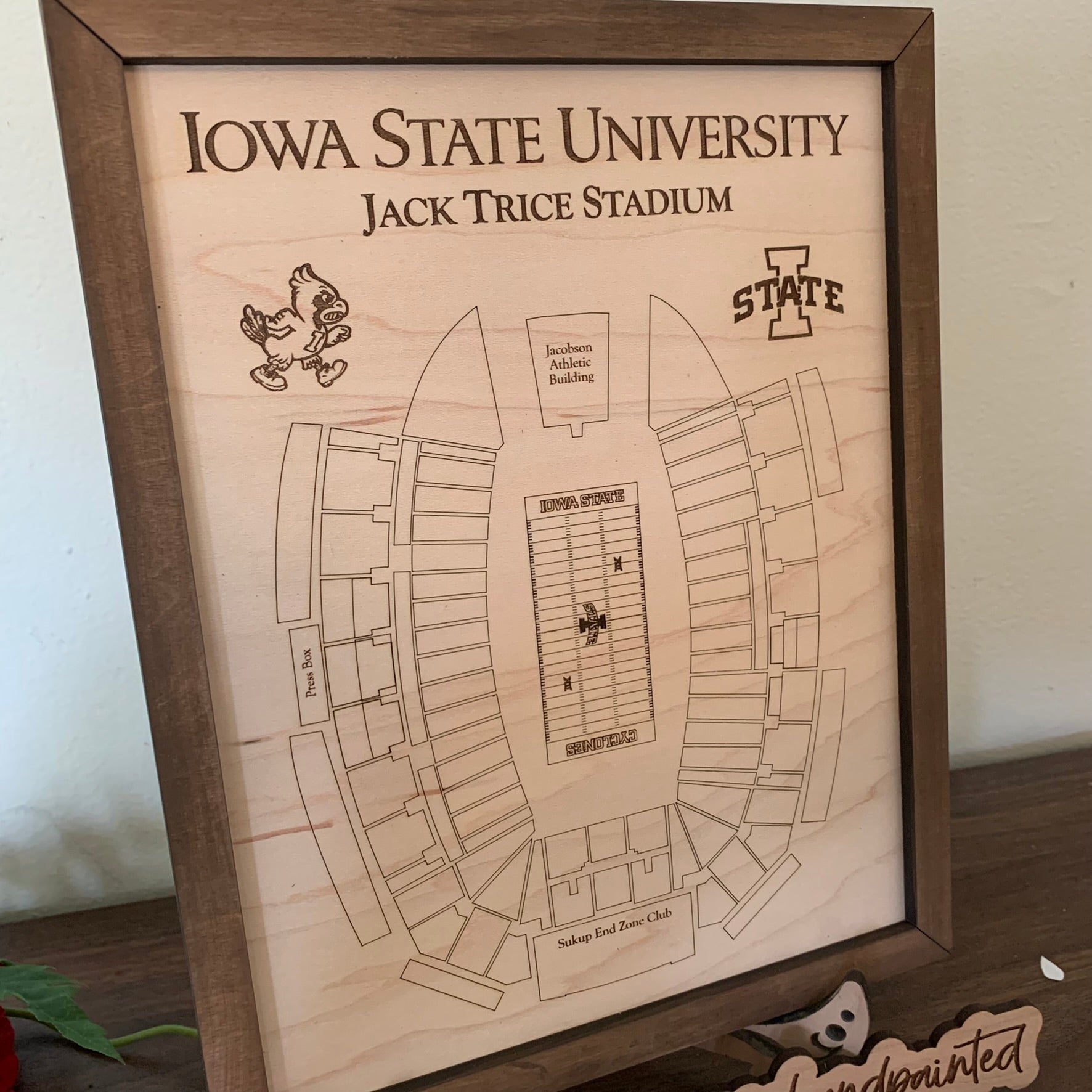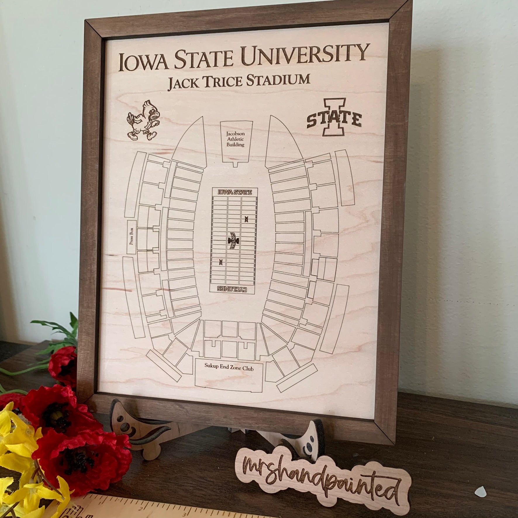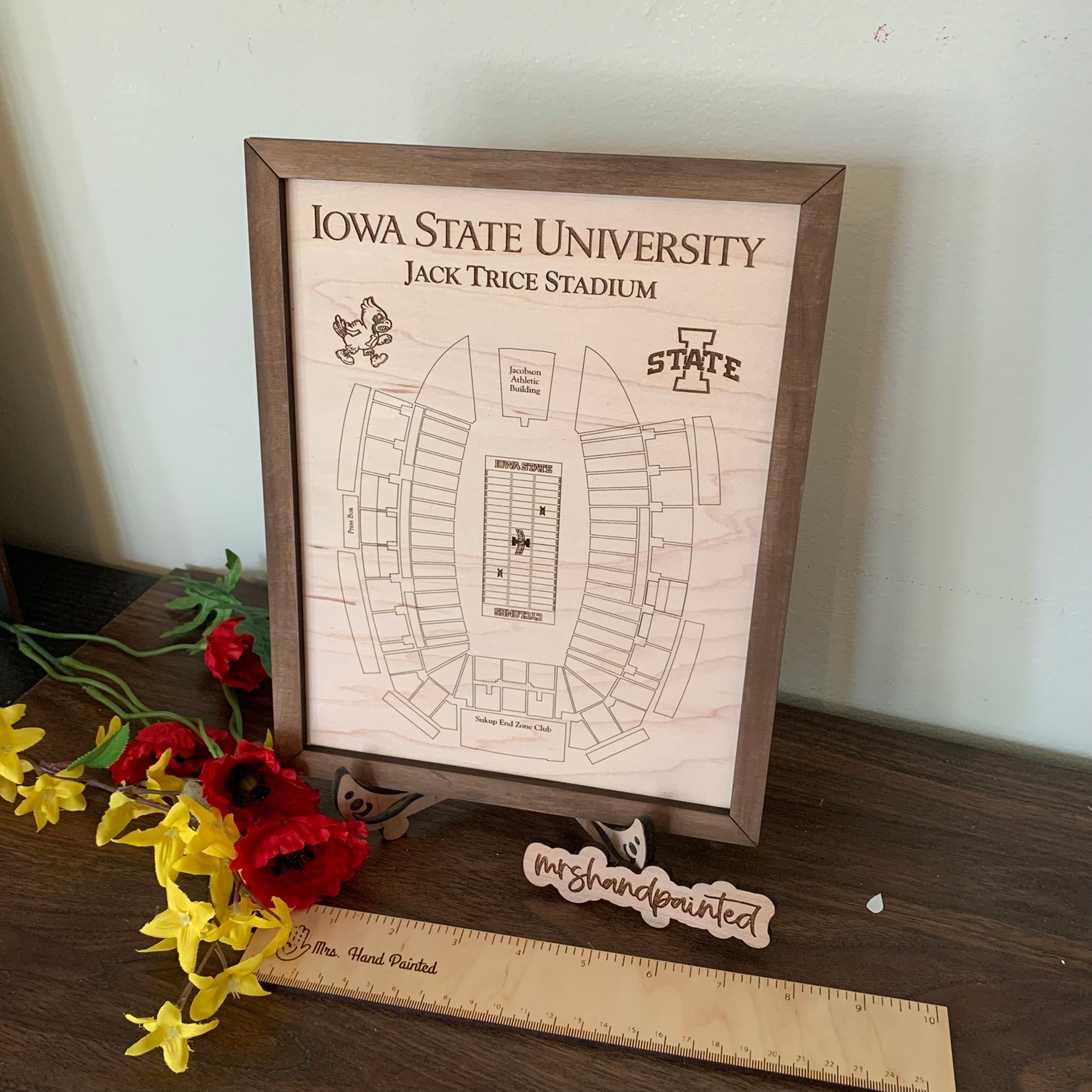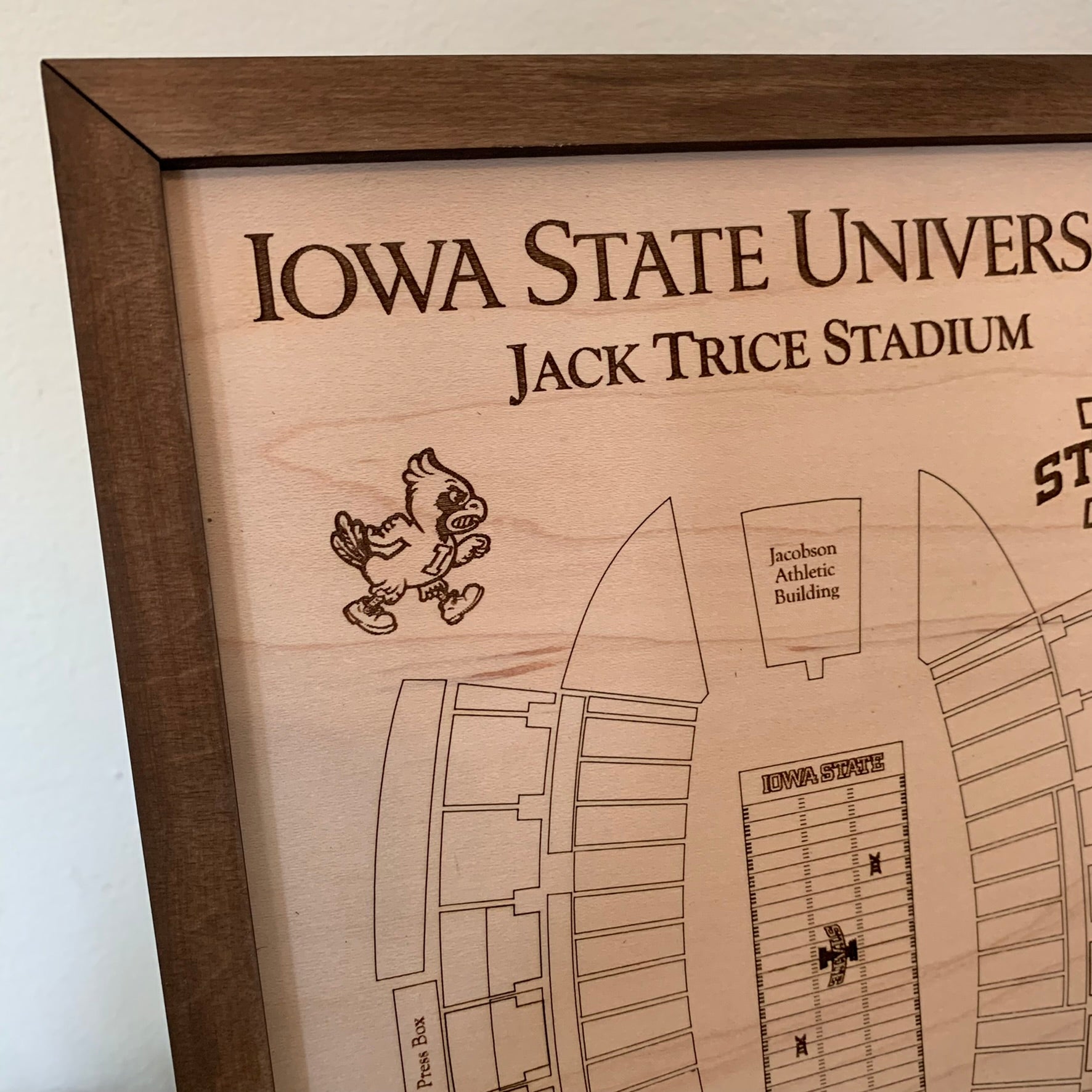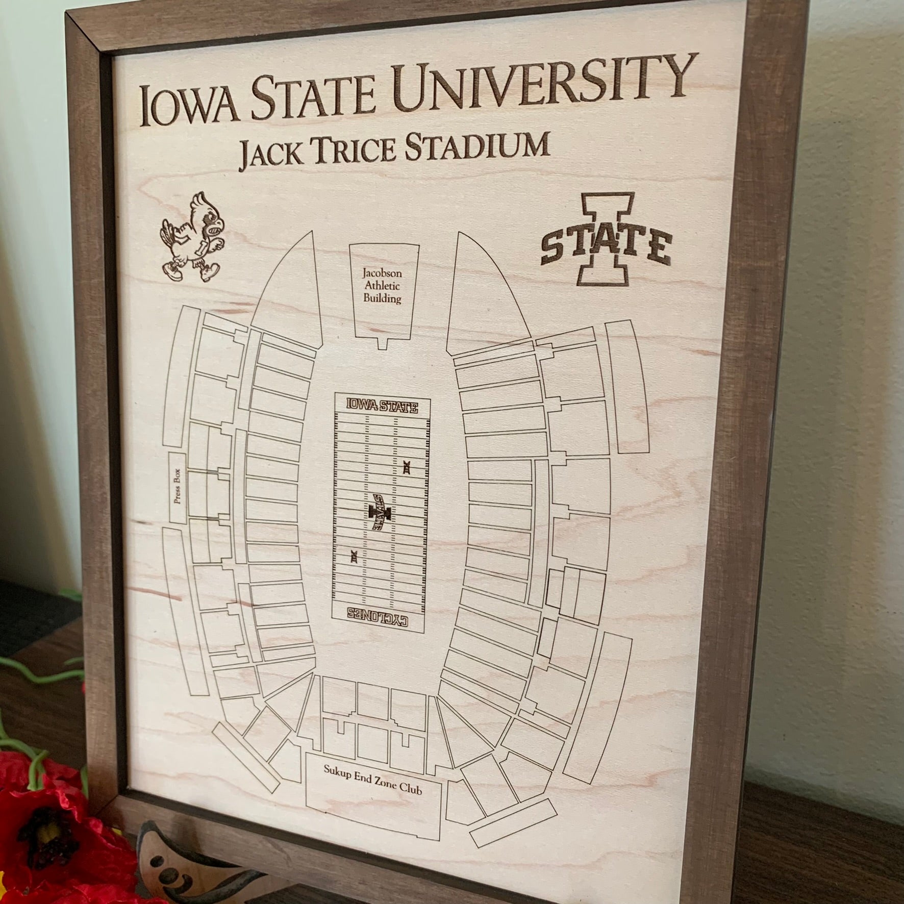 Custom Laser Cut and Engraved Stadium Map of Jack Trice at Iowa State University or Hilton Coliseum
