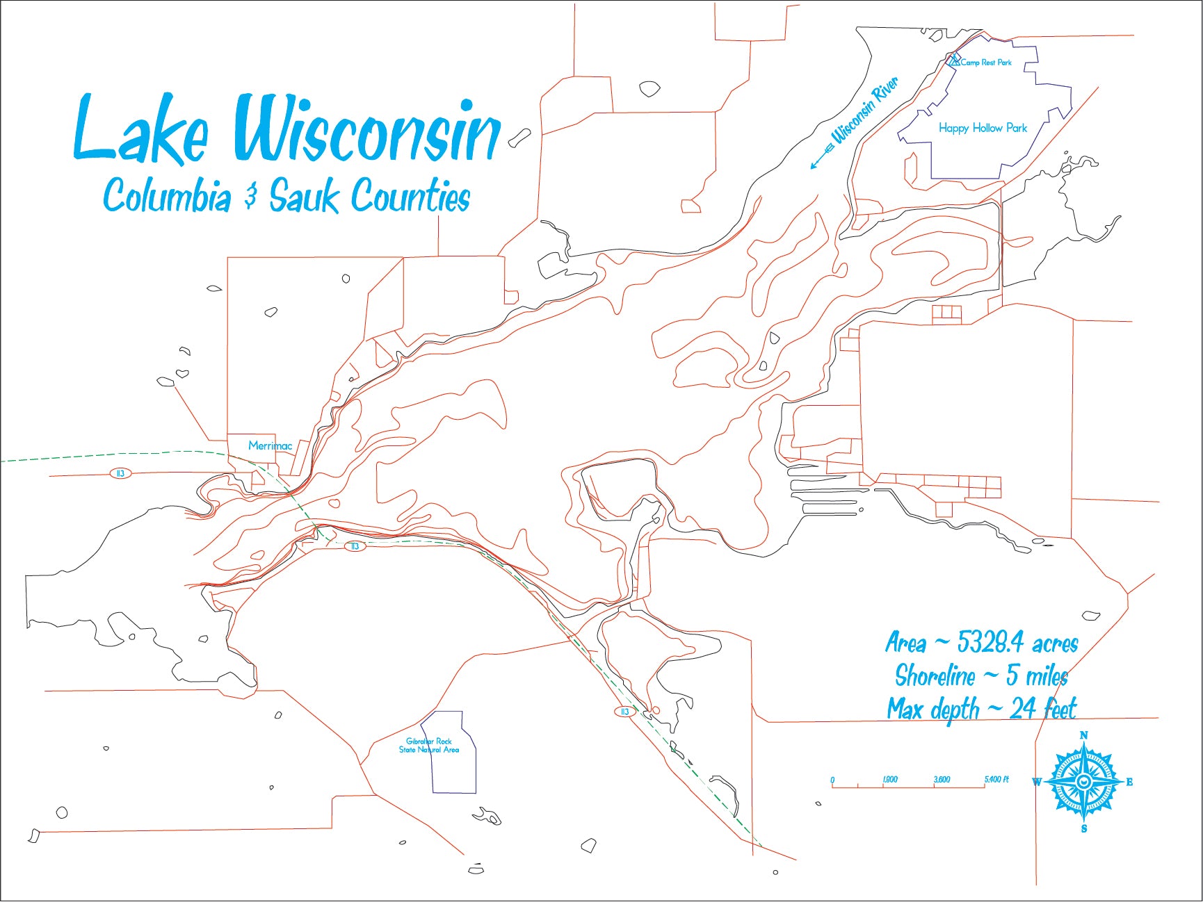 Lake Wisconsin - Laser Engraved Map File - DIGITAL FILE