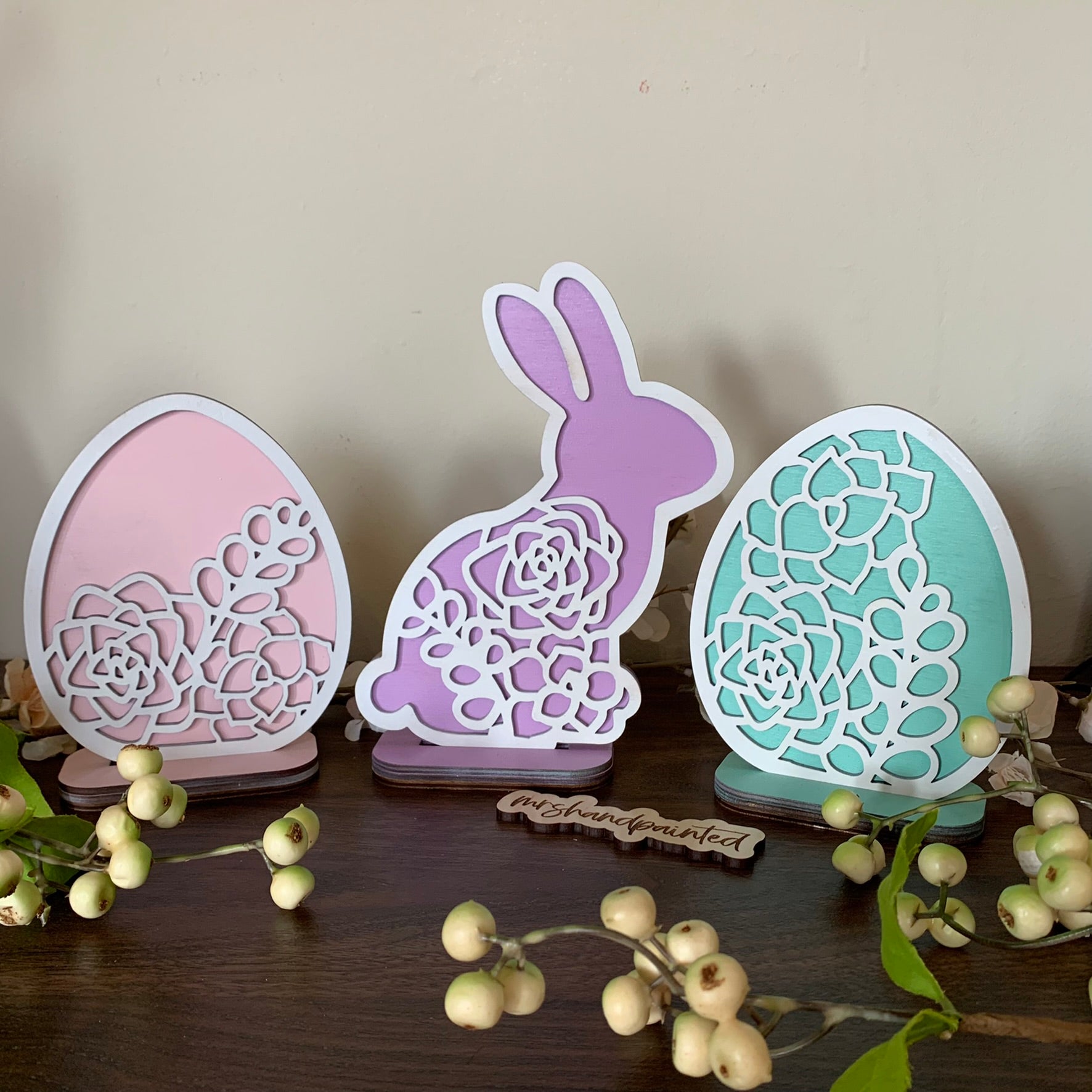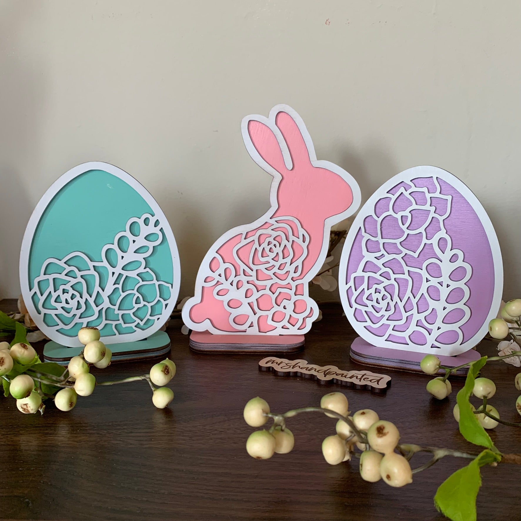 Laser Cut File - Succulents Standing Easter Bunny and Eggs - Digital Download SVG, DXF, AI files