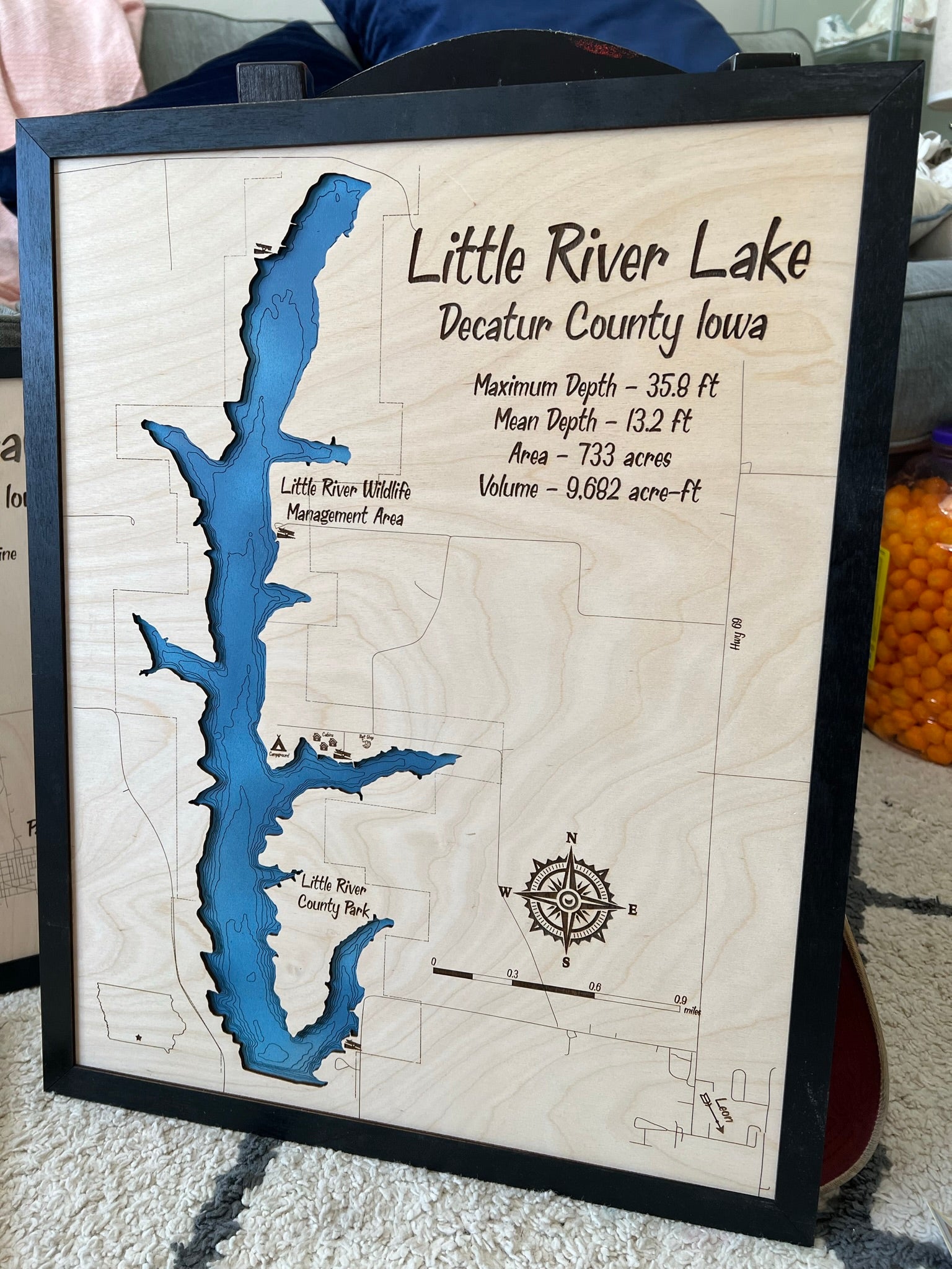 Little River Lake - Laser Cut Engraved Wood Lake Map