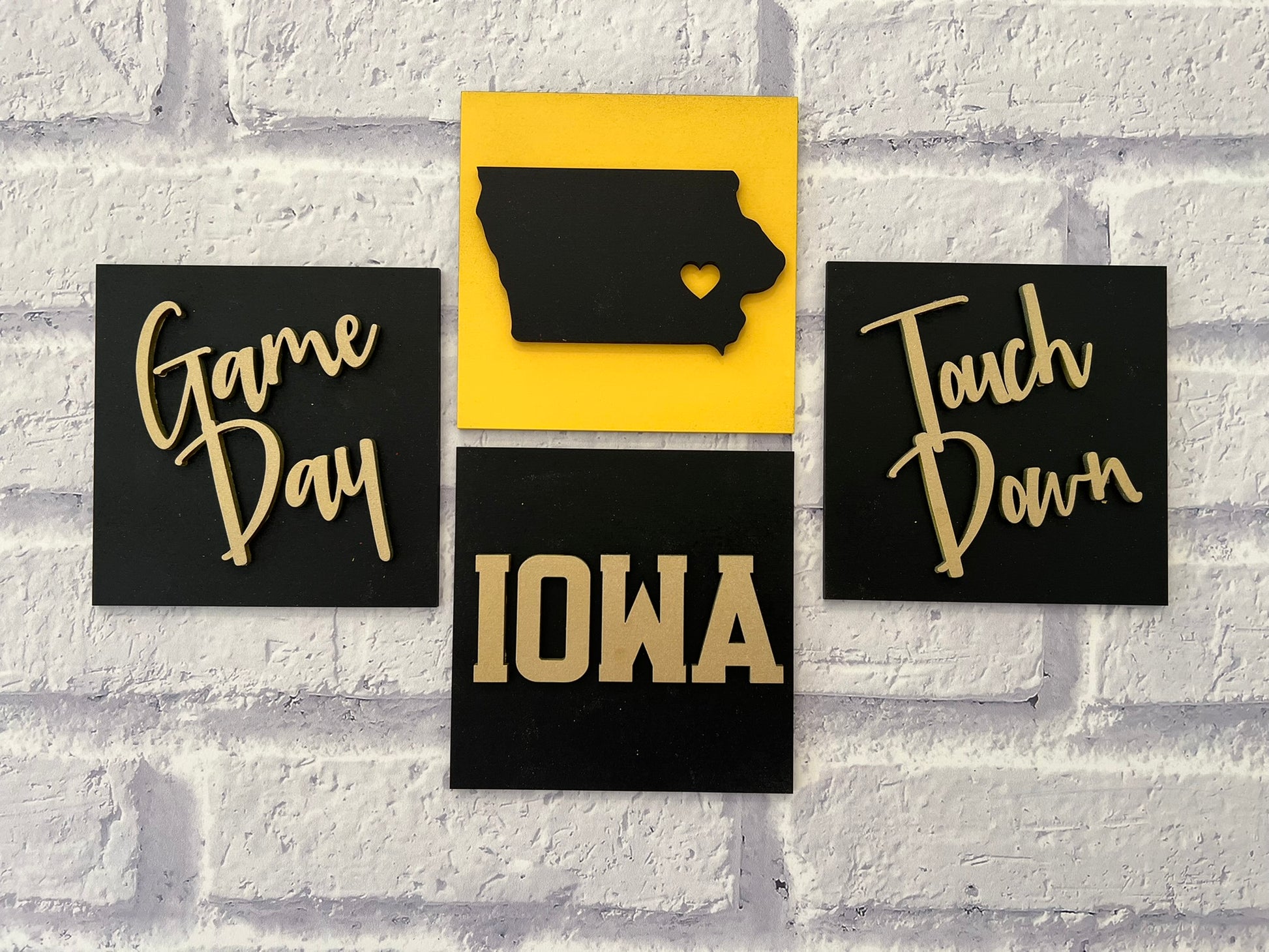 Original Designs by Jodie Hand ~ Mrs. Hand Painted. A small collection of Iowa State and Iowa themed interchangeable leaning ladder tiles. Each sold individually. Choose from a variety of styles. This collection is called "Iowa State and Iowa" and has 5 options to choose and two color themes: State with Heart, Game Day, Touch Down, Hilton Magic and Iowa State (or Iowa)