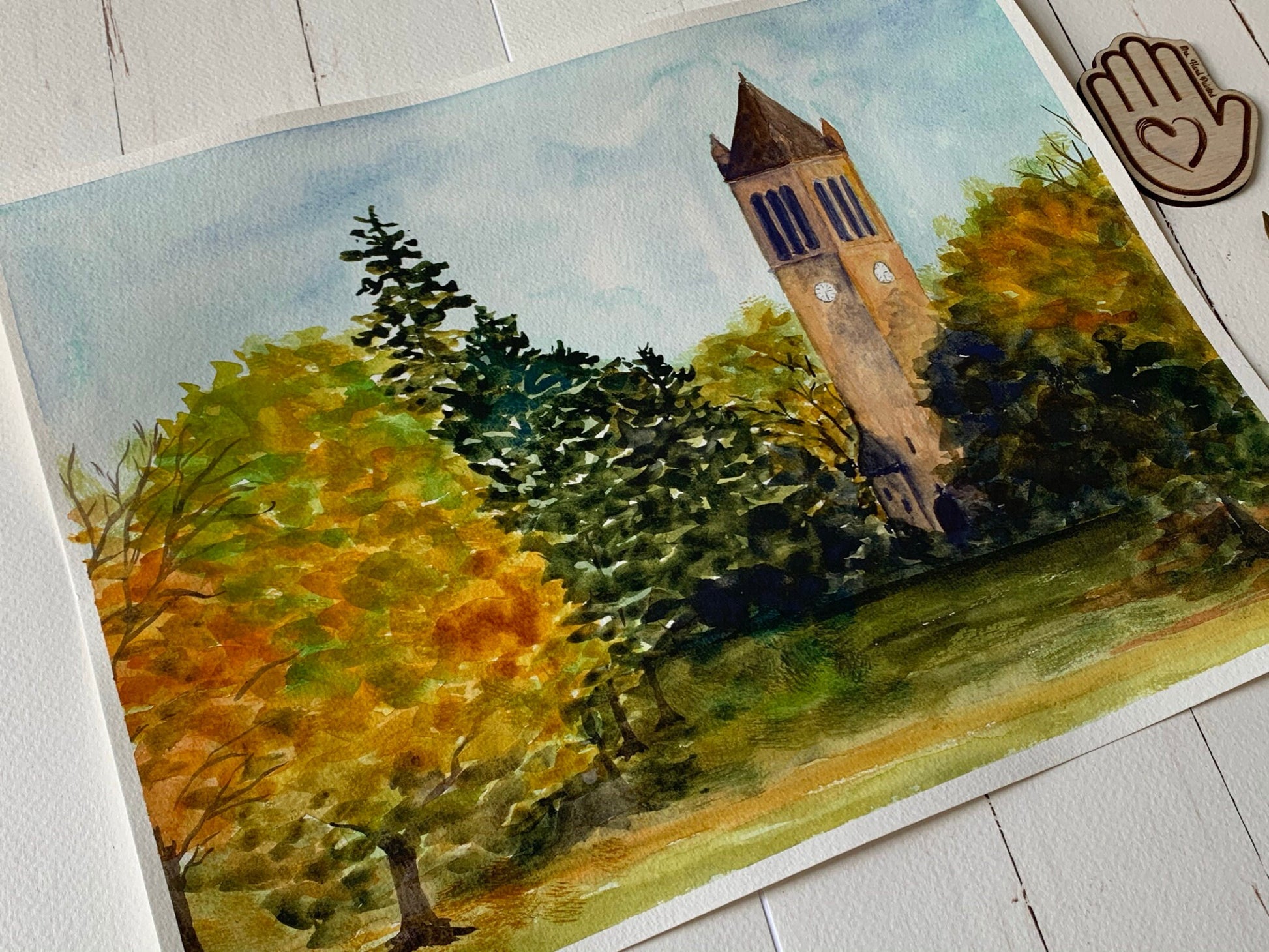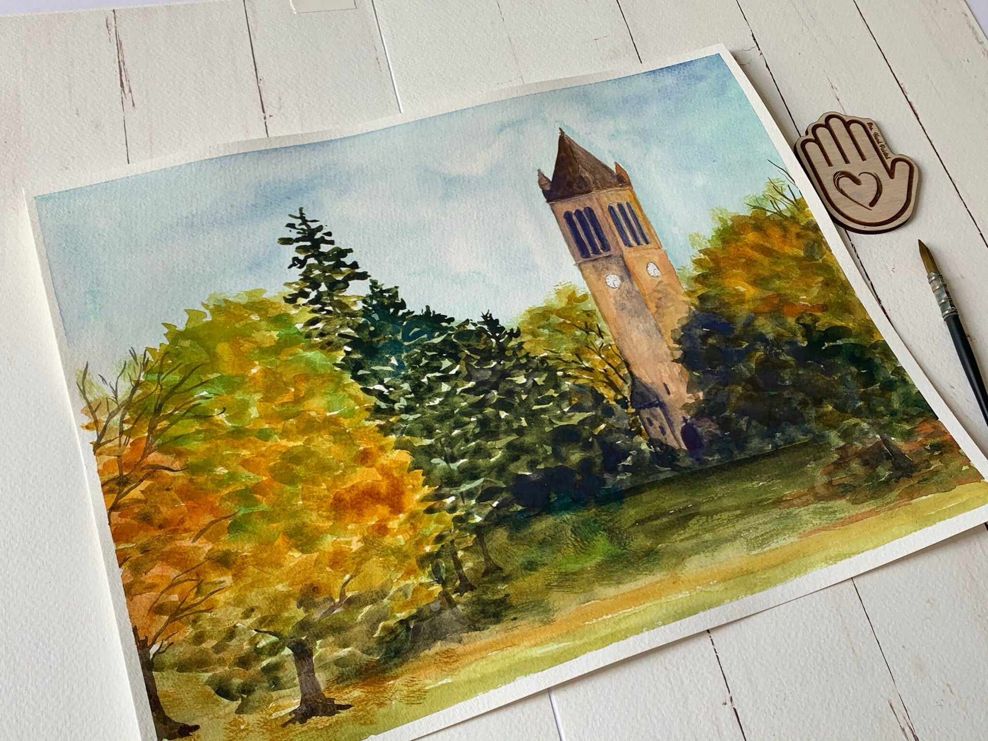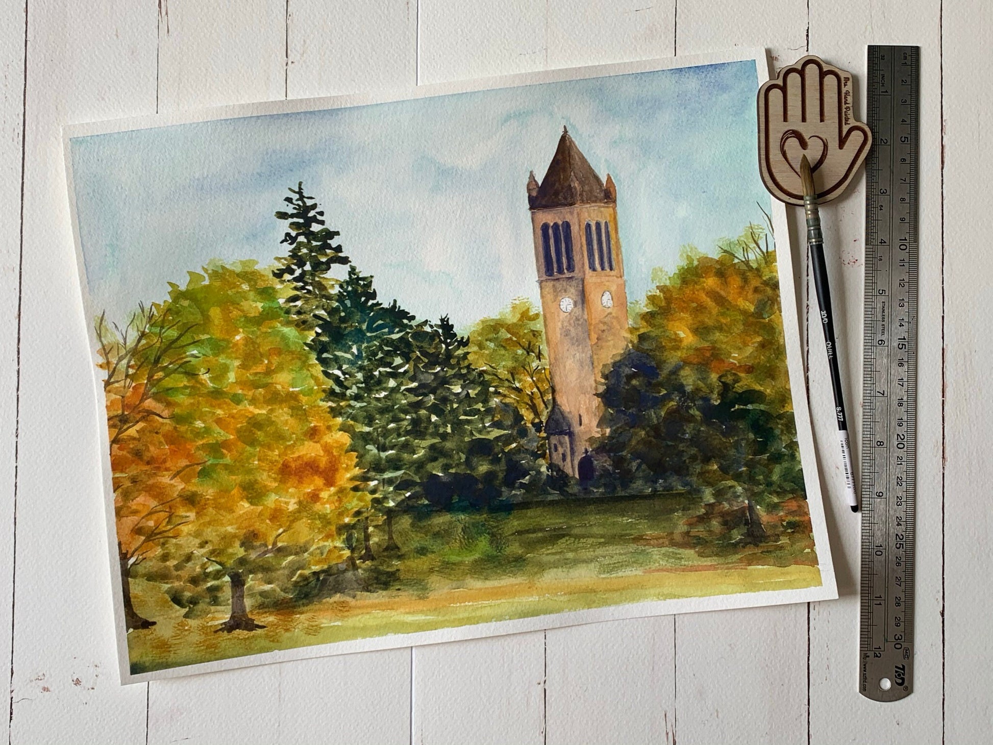 Original Watercolor Painting - Autumn at the Iowa State Campanile