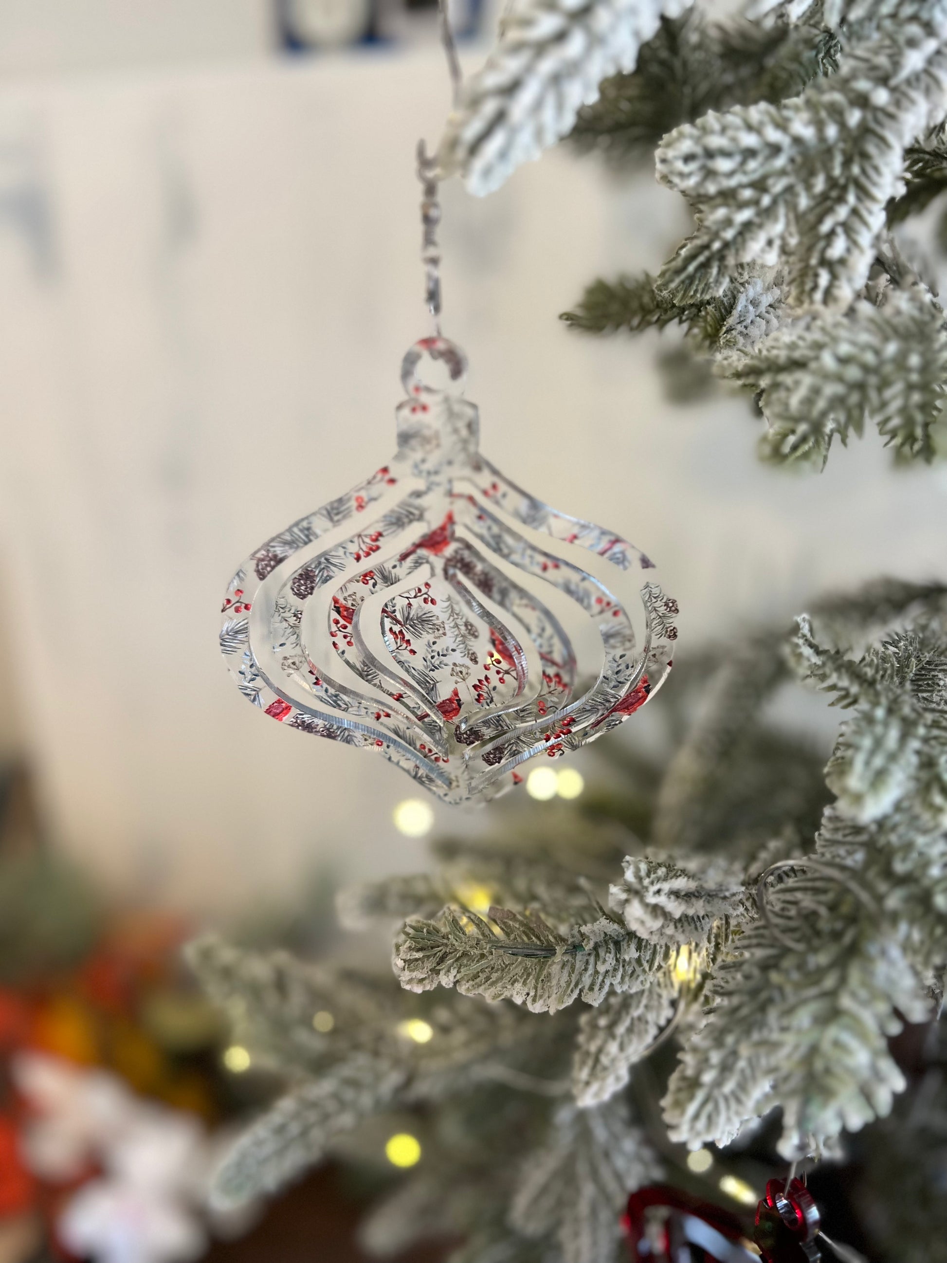 Make your Christmas sparkle with this laser-cut retro bauble spinner. Hang it up as an ornament and watch as the light catches its phosphorescent edges, or keep it up year-round as a Suncatcher! Choose from patterned or transparent materials and enjoy the twirls of vibrant colors as it spins. A festive feast for the eyes!