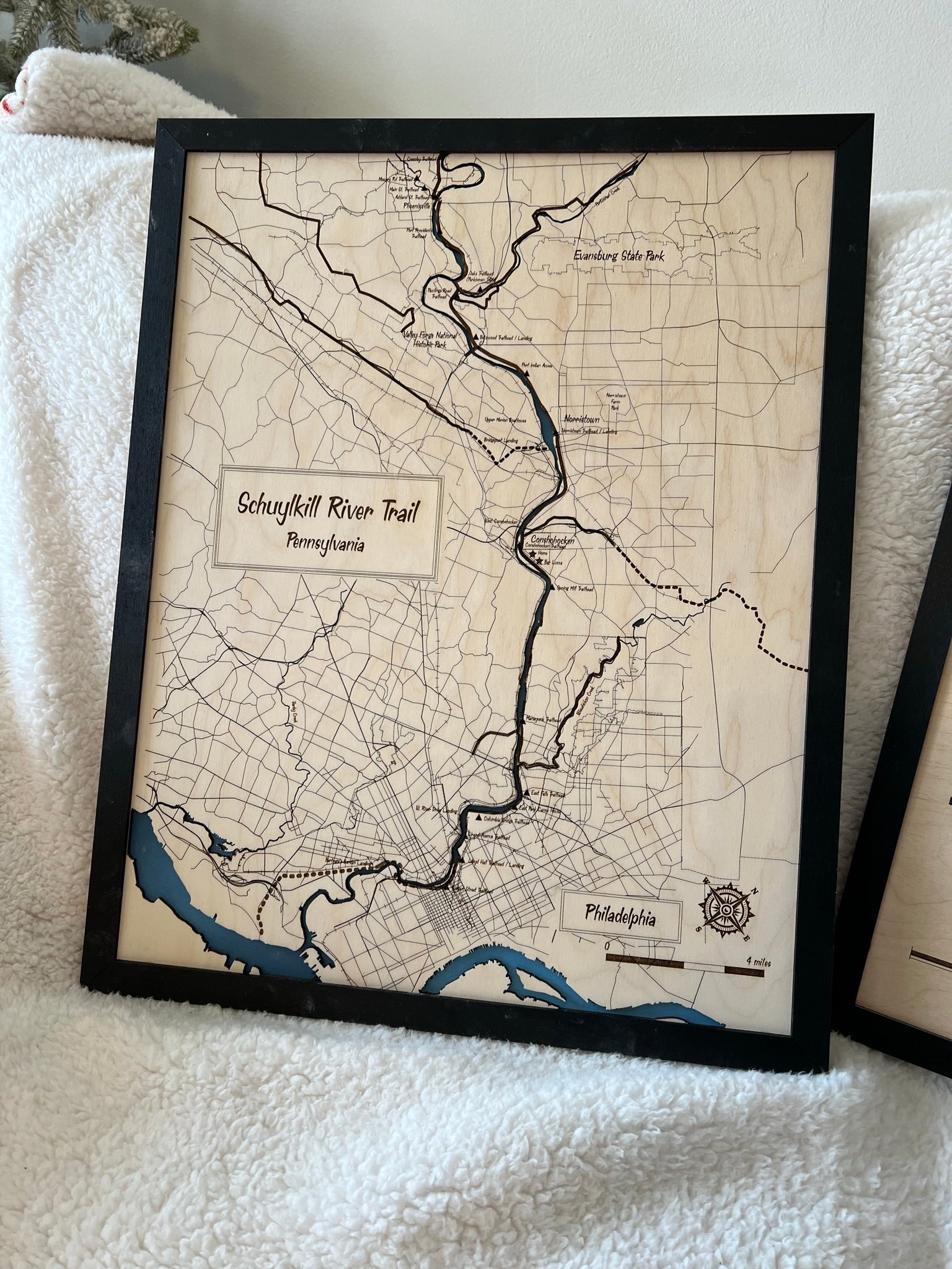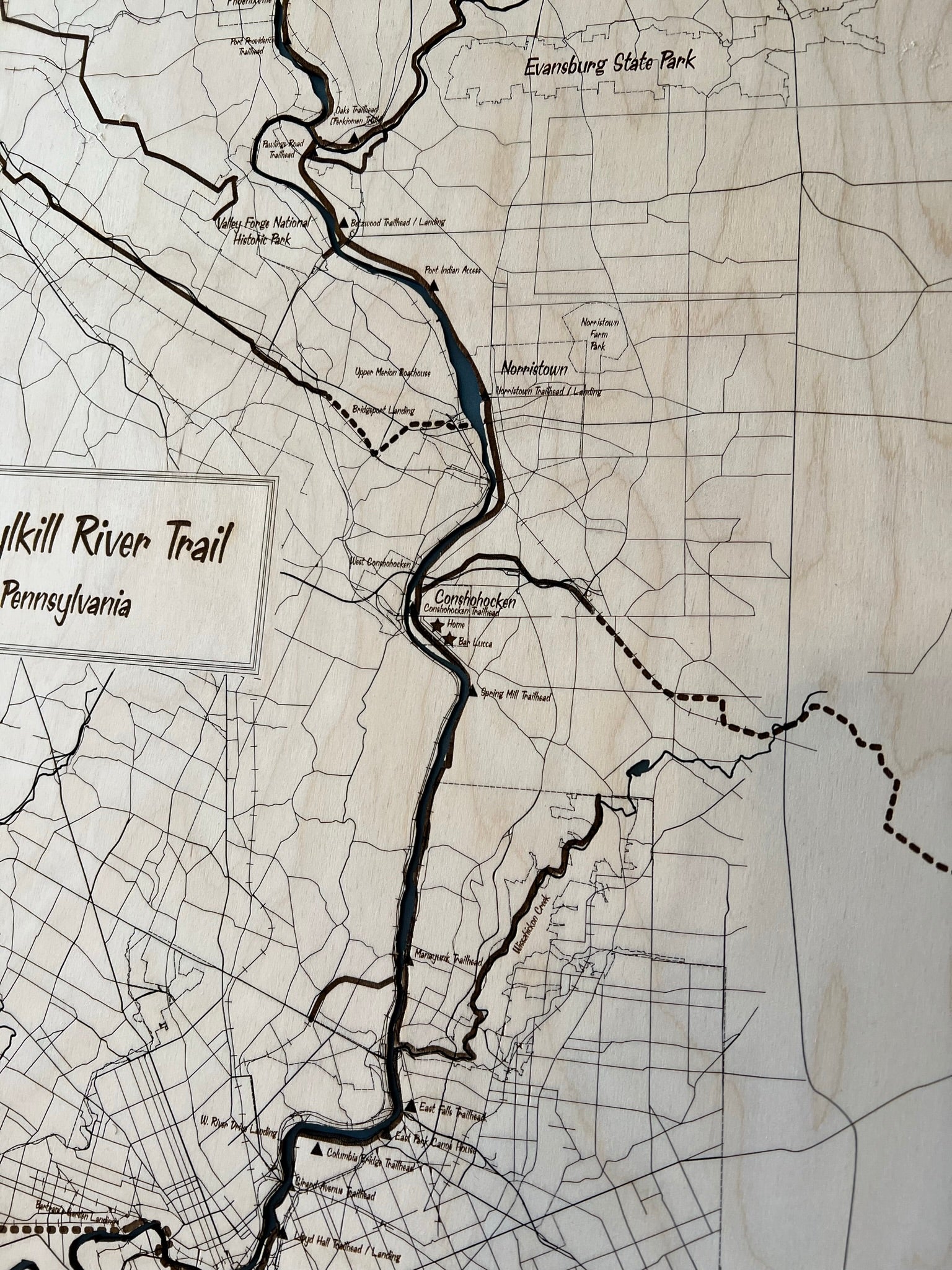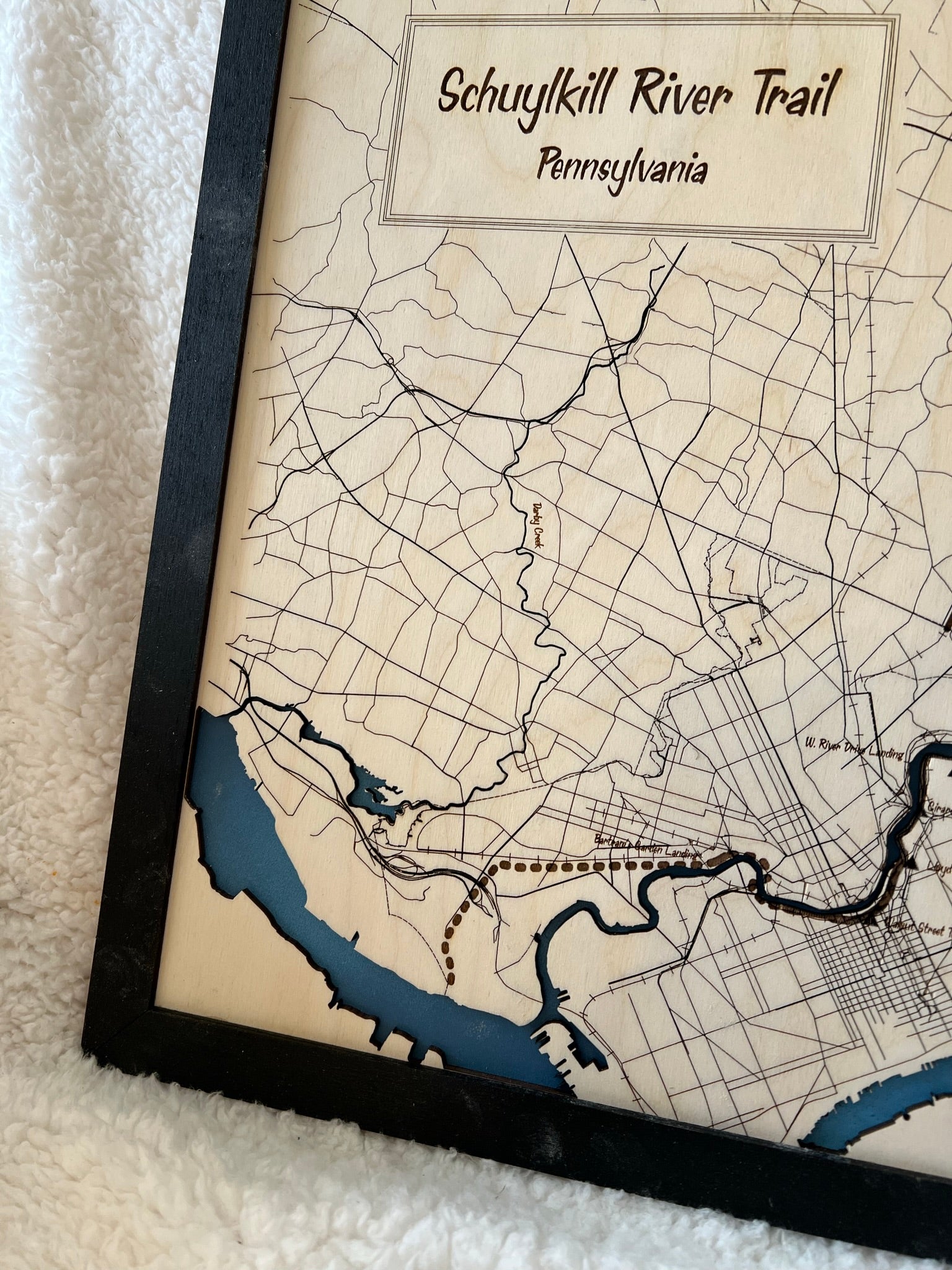 Gift the cyclist in your life a unique holiday surprise: the Schuylkill River Trail Map! This 16x20 inch laser engraved map features highly detailed engravings of the bike trail that won't soon be forgotten. With the ability to add custom locations, it's sure to be a hit! More fun than a regular old map, the Schuylkill River Trail Map is an adventurous treasure!