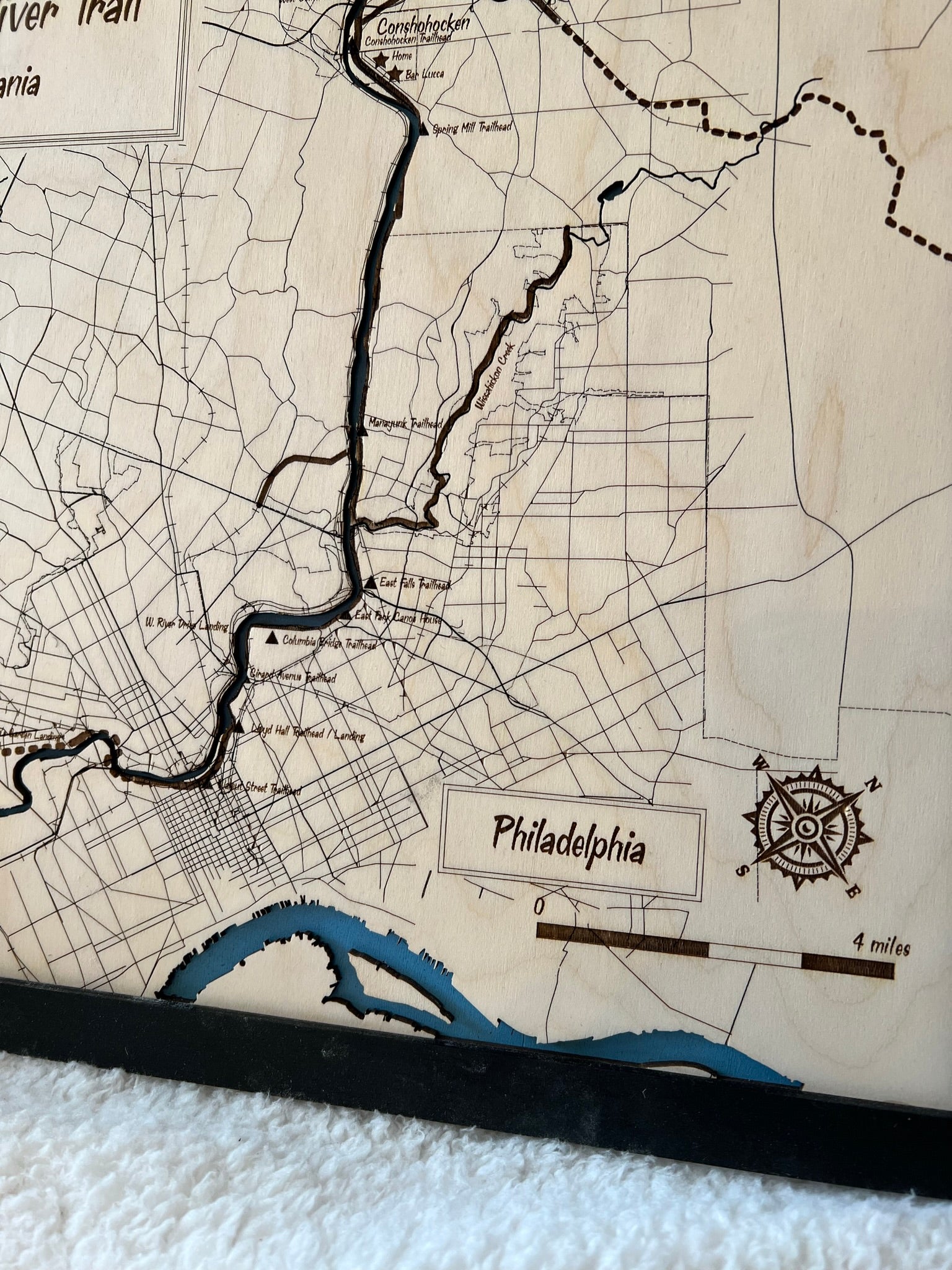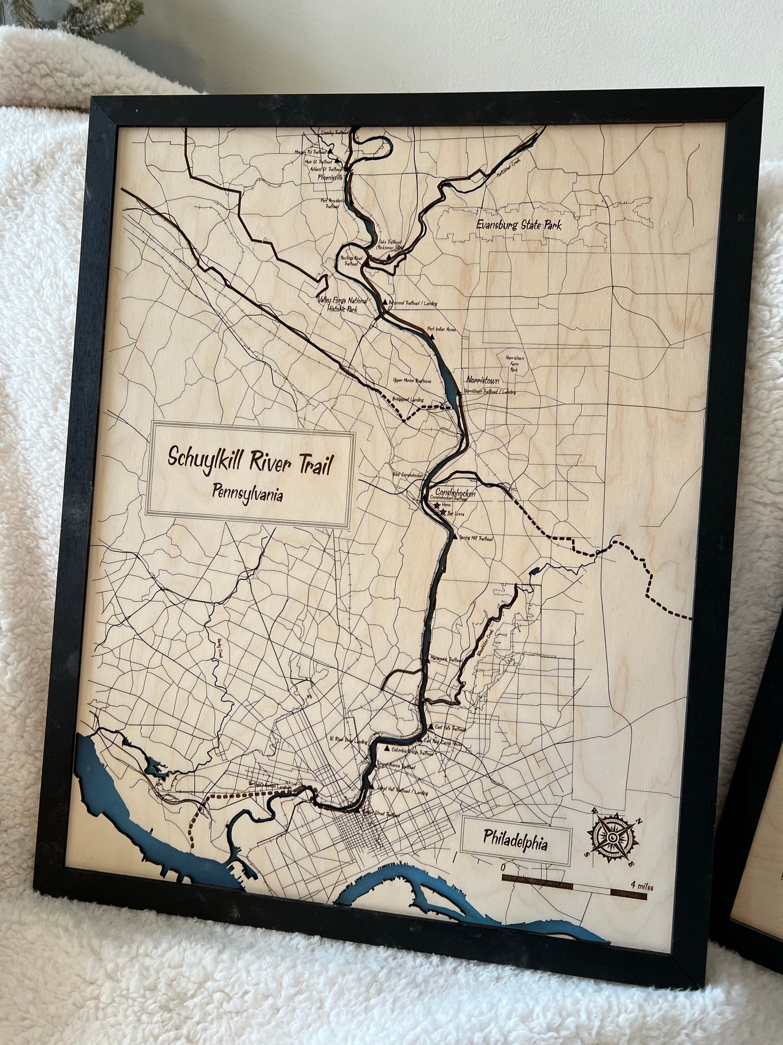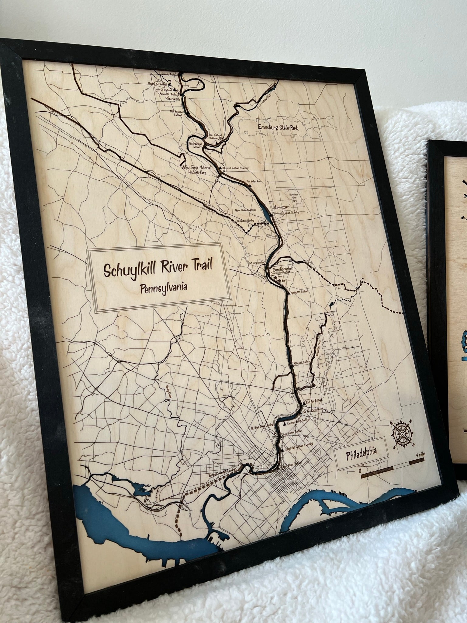 Gift the cyclist in your life a unique holiday surprise: the Schuylkill River Trail Map! This 16x20 inch laser engraved map features highly detailed engravings of the bike trail that won't soon be forgotten. With the ability to add custom locations, it's sure to be a hit! More fun than a regular old map, the Schuylkill River Trail Map is an adventurous treasure!