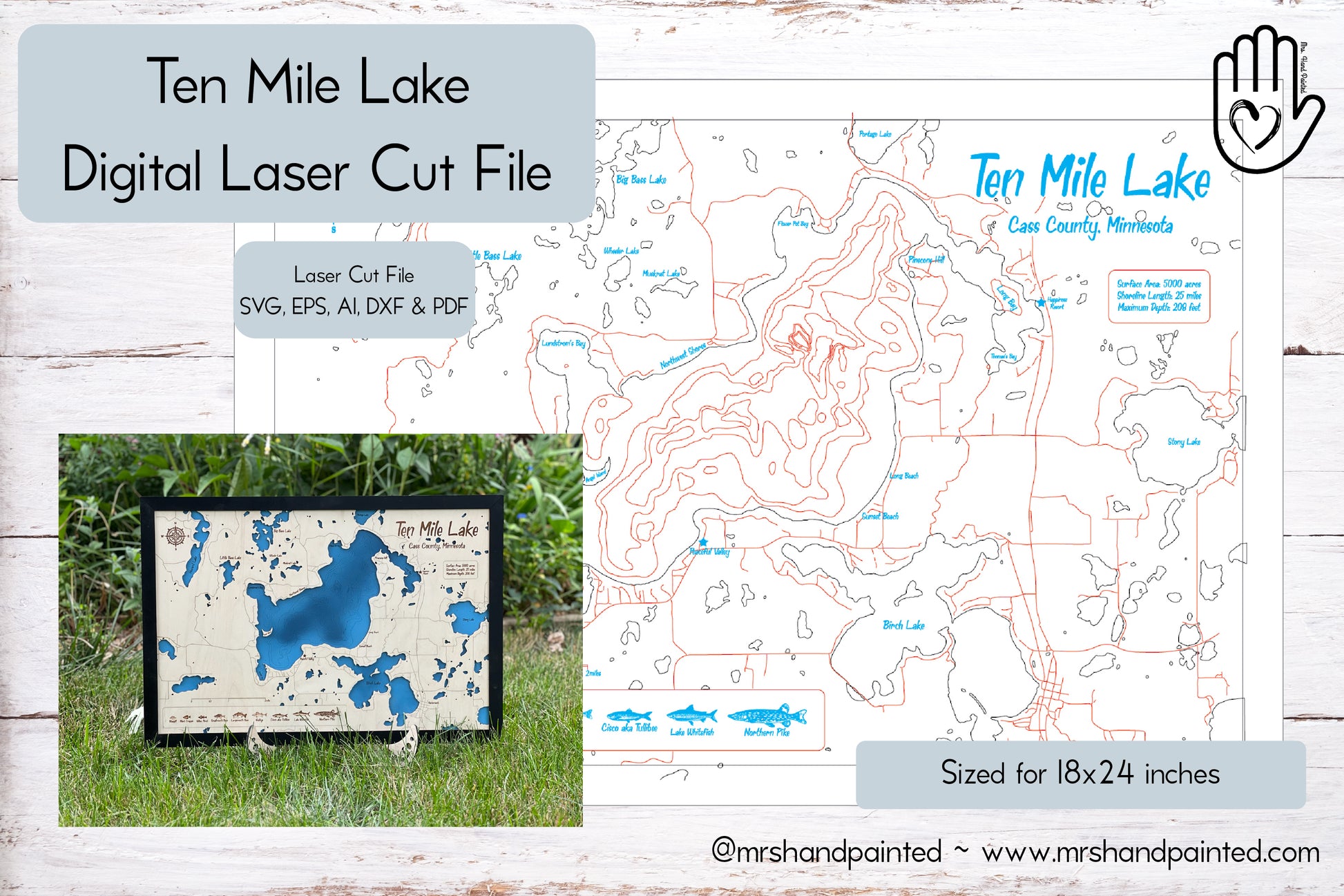 Ten Mile Lake - Cass County Minnesota- Laser Engraved Map File