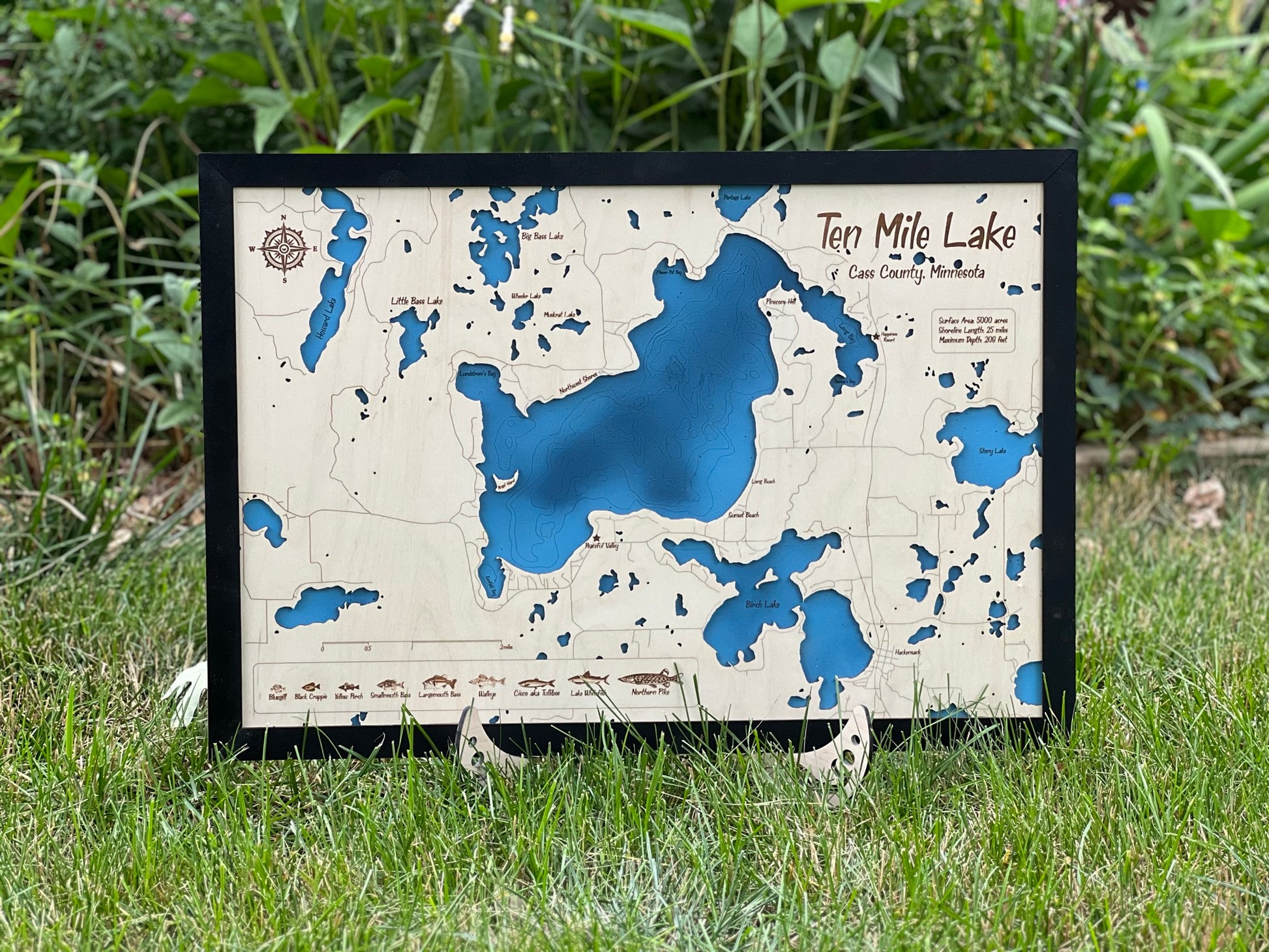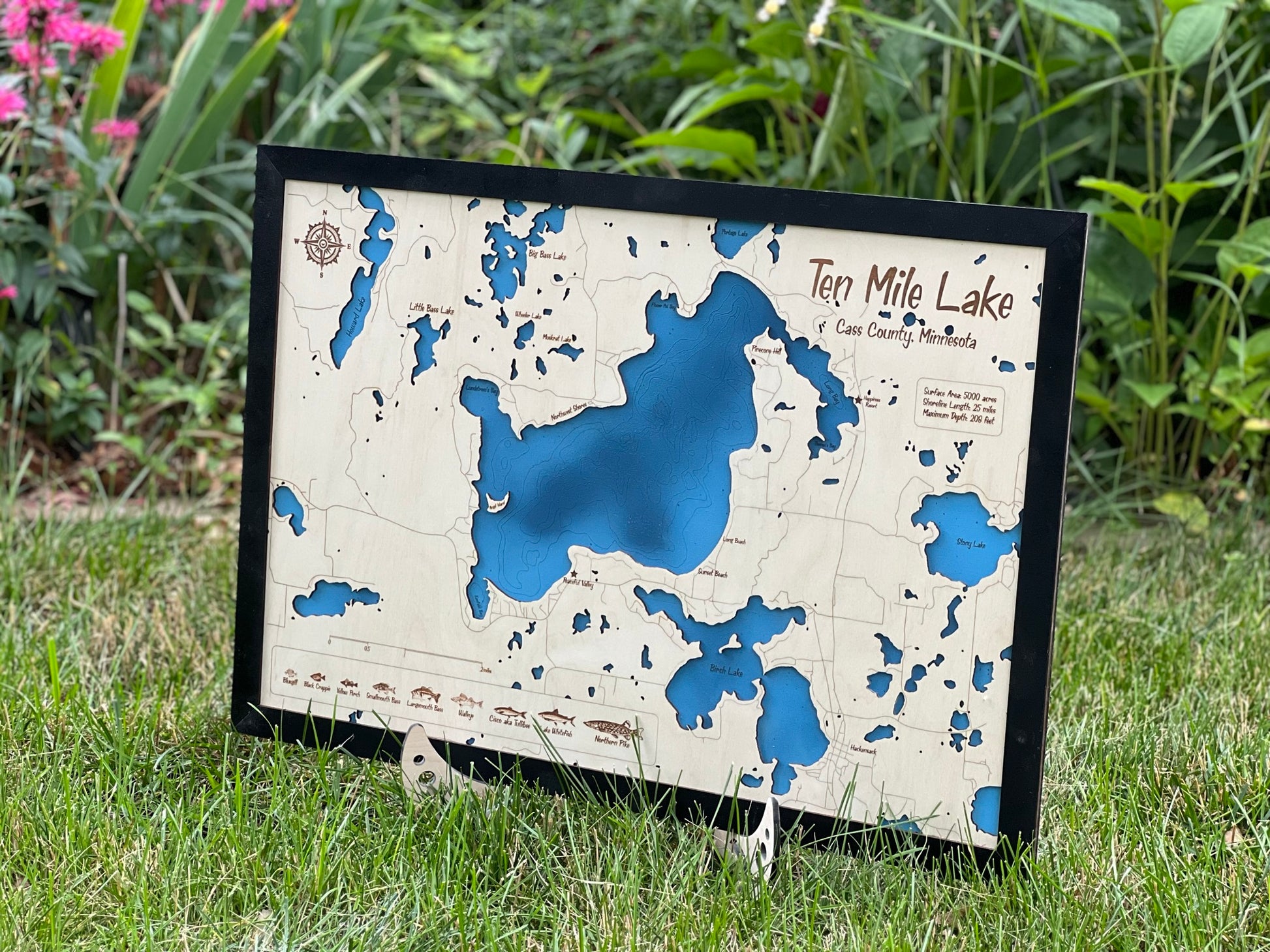 Ten Mile Lake - Custom Layered Wood Engraved Lake Map