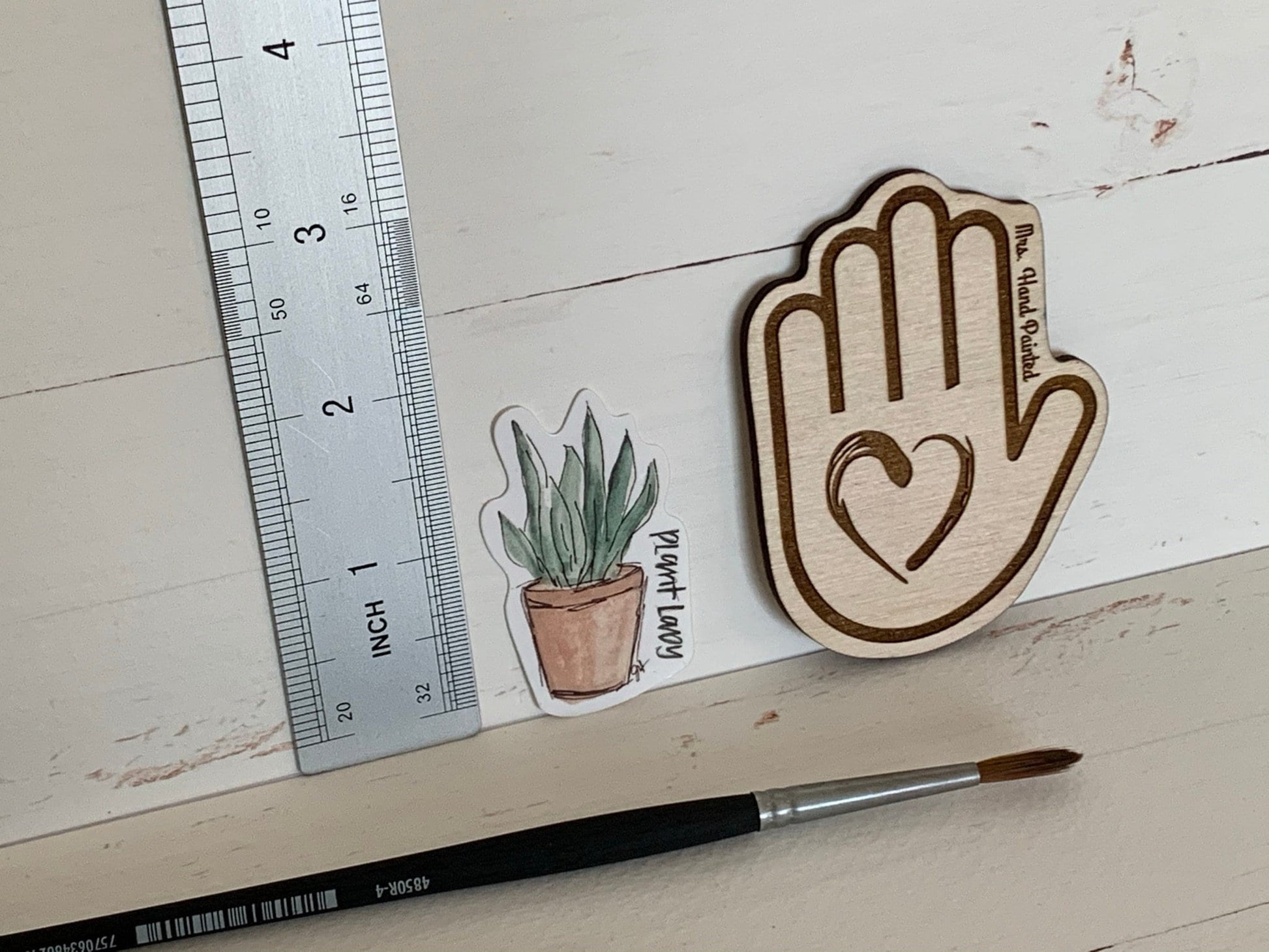 These vinyl die cut stickers are perfect for decorating your devices or gear! The original artwork features a watercolor design of a boho / hippie style snake type plant in a color palette of turquoise and blush. The phrase “Plant Lady" is along the side edge of the plant on glossy white vinyl background. There is 1 size available and are sold as single stickers.